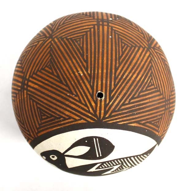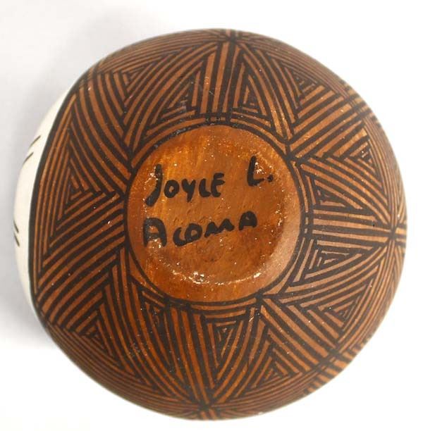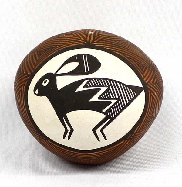 Vintage Native American Acoma Pottery Seed Jar by Joyce Leno, rabbit and fine line motif, signed on the bottom, measures 3.5'' x 4''