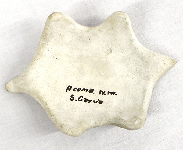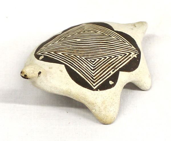 Vintage Native American Acoma Pottery Turtle by Shawna Garcia Rustin, measures 2.5'' x 4'' x 1'', marked on the bottom Acoma, N.M. S. Garcia, there are a couple of small pitted spots, FYI: Shawna Garcia-Rustin was born in December of 1969 into the Acoma Pueblo, and is a member of the Red Corn Clan family. She learned the ancient art of working with clay from her parents in 1991. Shawna currently collaborates with Patrick Rustin, who was born into the Apache Tribe from California in 1970, and together this team makes the finest contemporary pottery created today.''