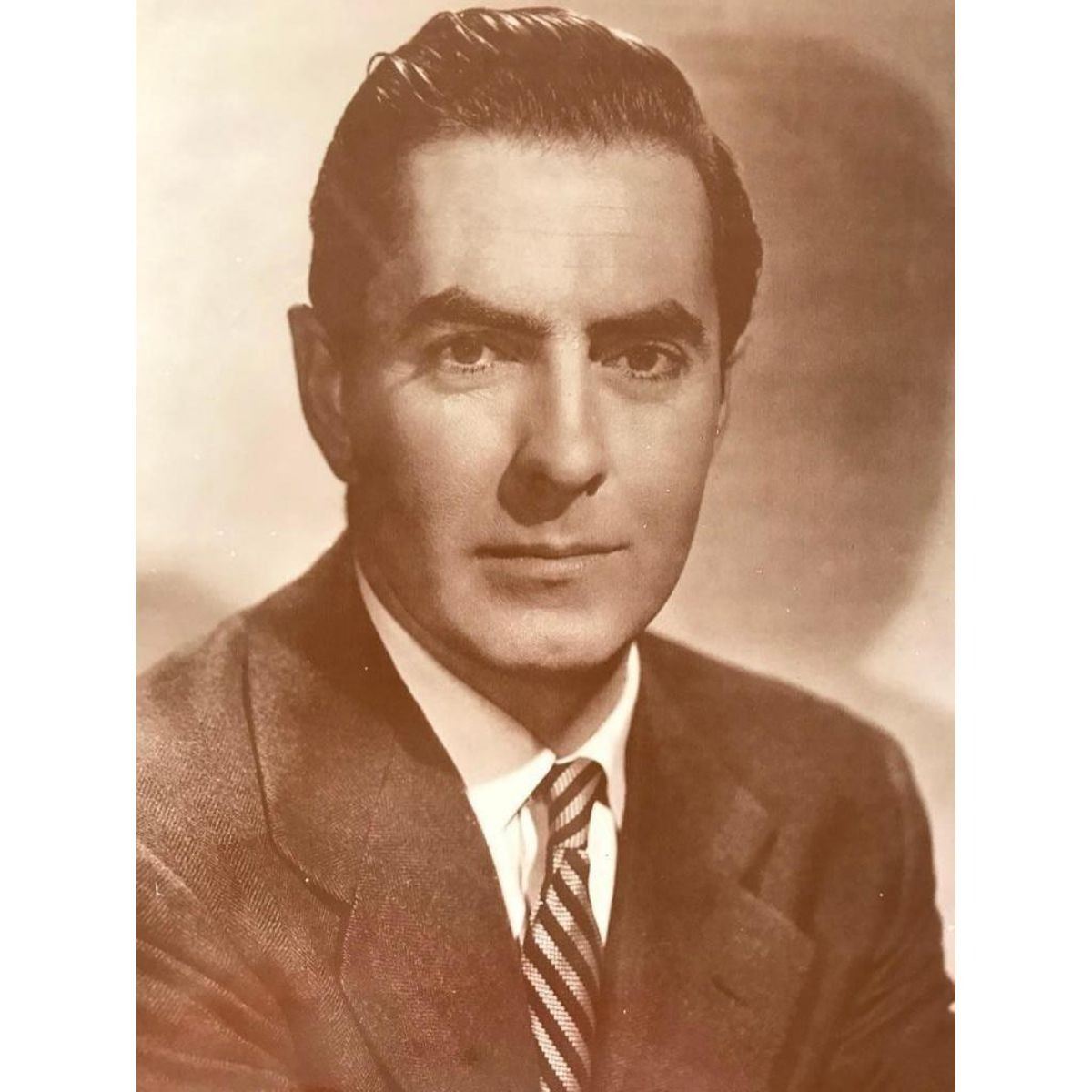 Vintage actor Tyrone Power sepia-tone photo print. Created in the early 1990's for The American Heritage Galleries, printed on cardstock, in original gallery packaging. 11" X 14".Â
