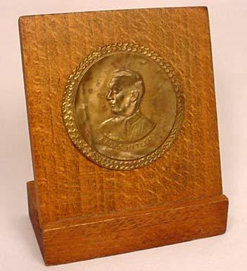 Vintage Adolf Hitler Wood And Metal Desk Plaque - Approx. 5" Tall