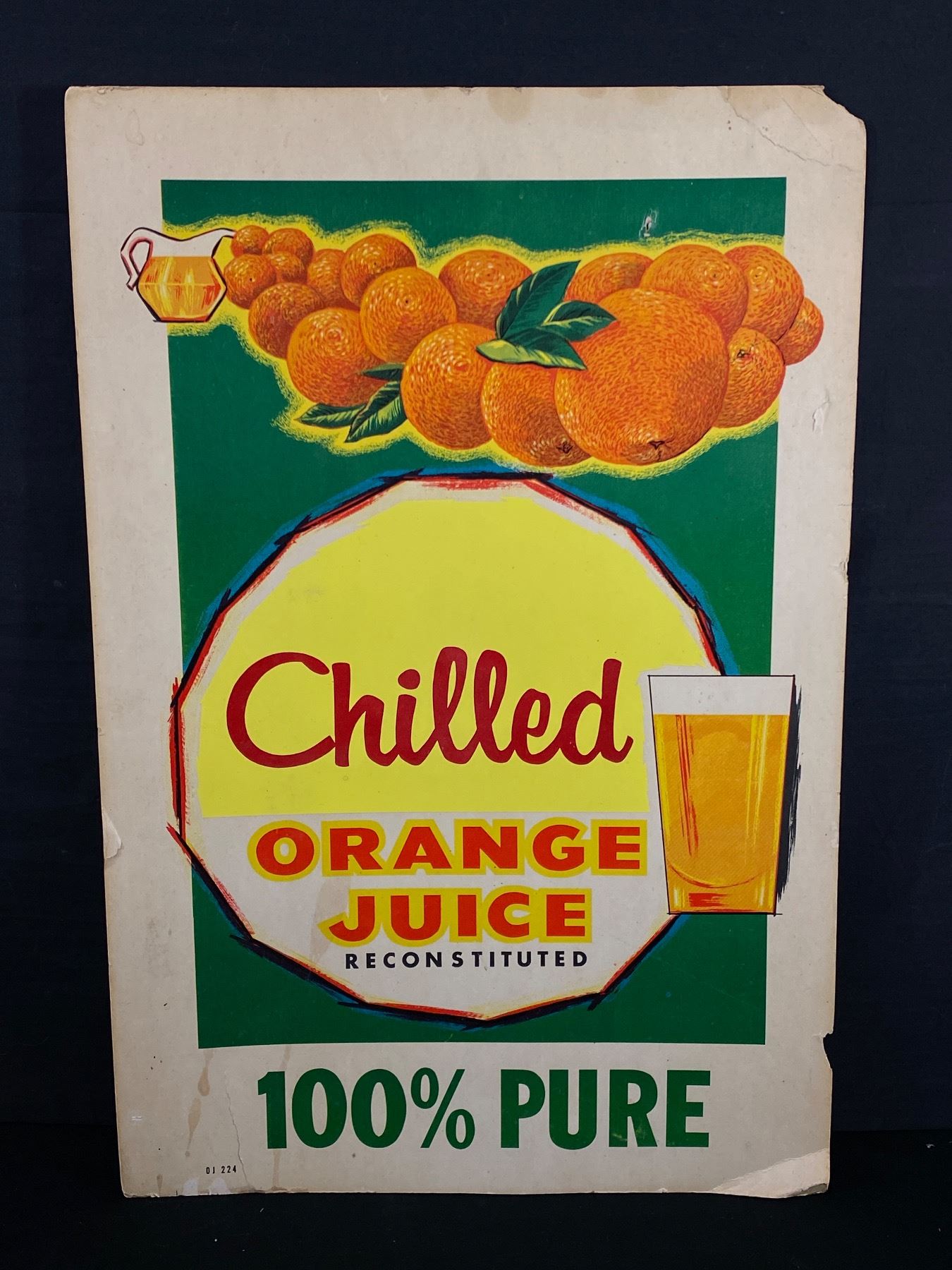Vintage Advertising Card - Chilled Orange Juice Sign. Approx. 14" x 21"