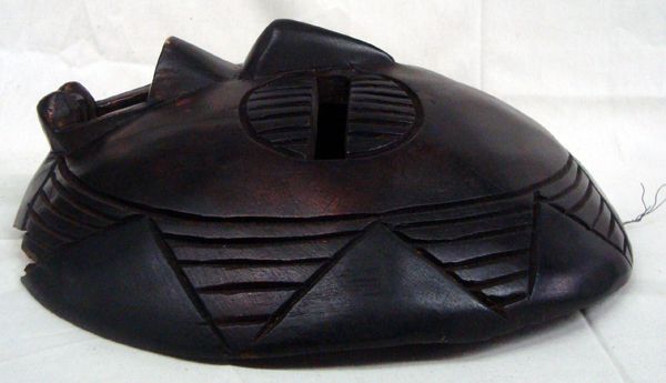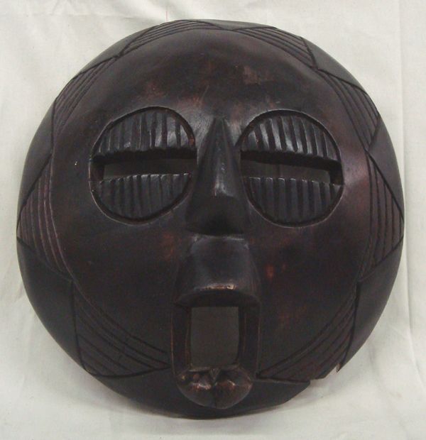 From the Proctor Collection. Vintage African Carved Wooden Mask, measuring 12'' high, 11'' wide and 4'' deep. Has some damage at the bottom right.
