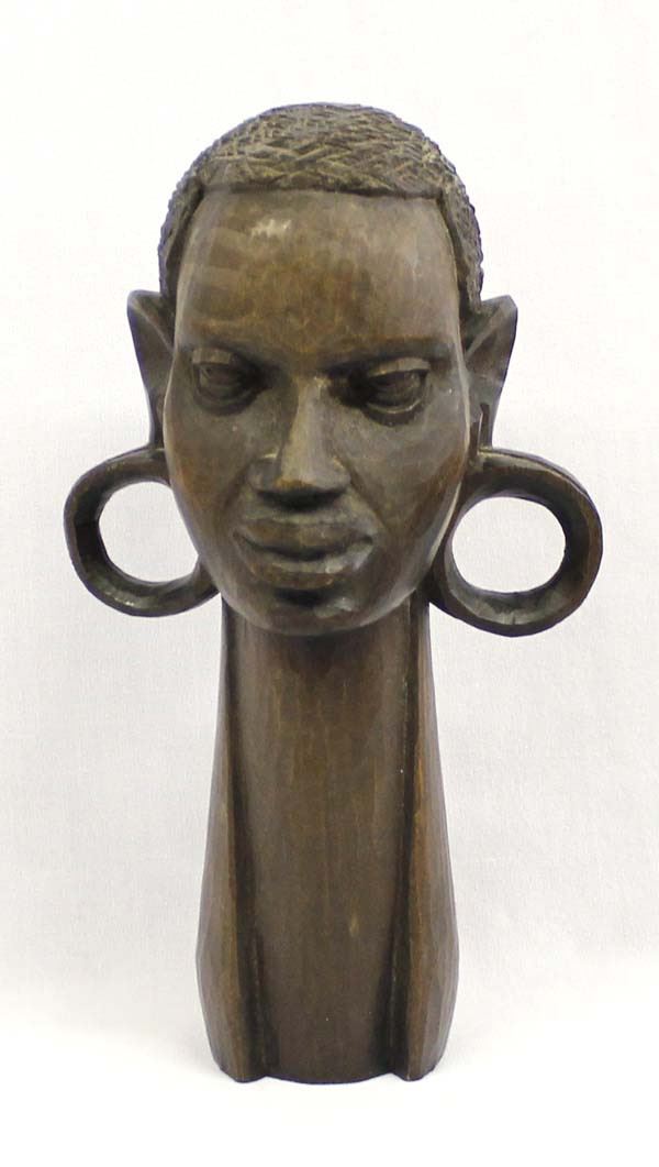 Vintage African Hand Carved Statue of Massai Female Tribe Member by Isaka, measures 6'' x 9'', the bottom is signed by Isaka who is reported to be a carver who sold in Nairobi Kenya during at least the late 60s.