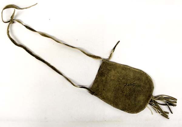 Vintage African Springbok Leather Carrying Bag by Thekiso, measures 6'' x 8'' which does include the strap, these bags are used by women when they are out gathering roots and nuts, the tag on the bag reads ''IXADE This item has been produced by Remote Area Dwellers of the Central Kalahari Game Reserve which is composed mostly of people of the Xikho and Xul groups.''