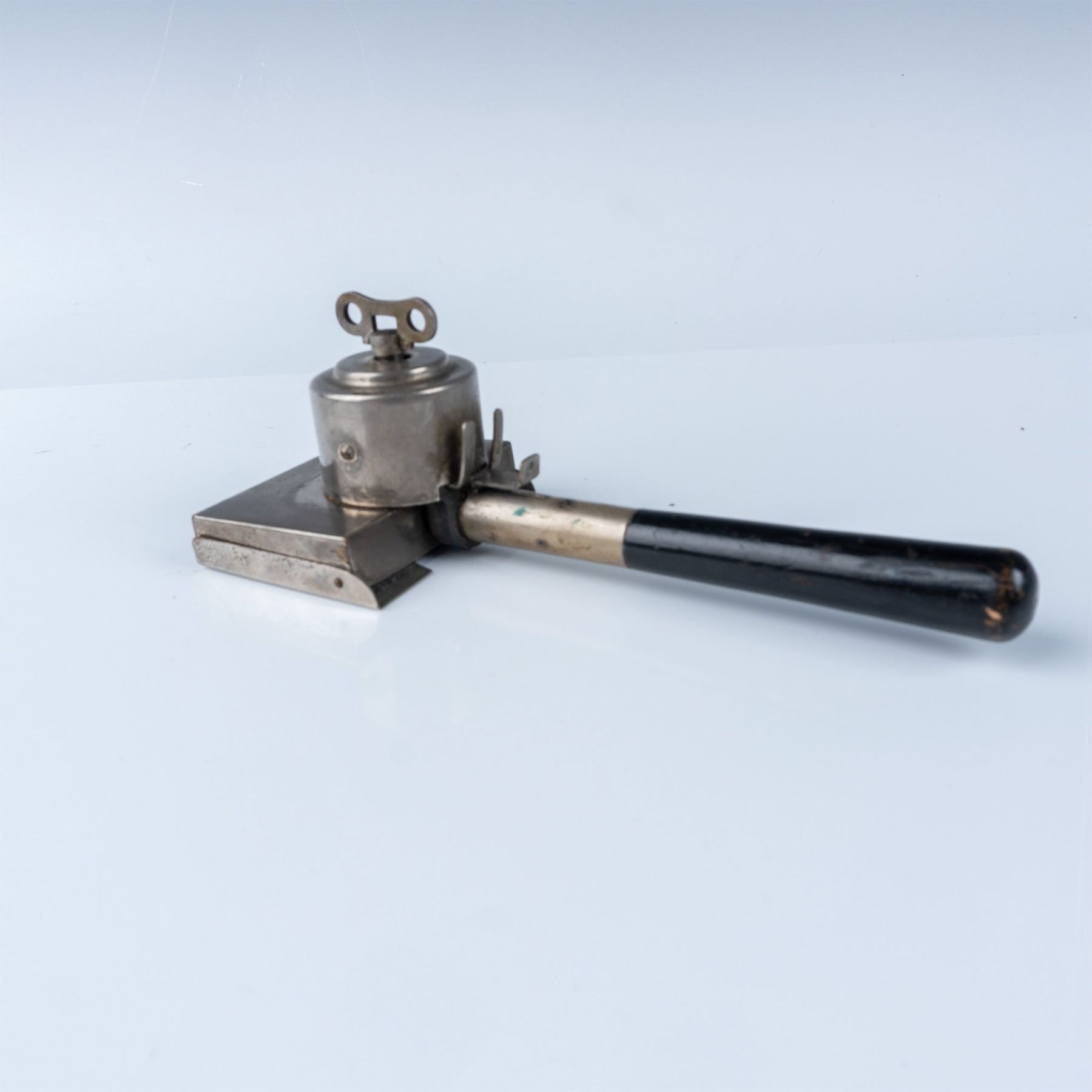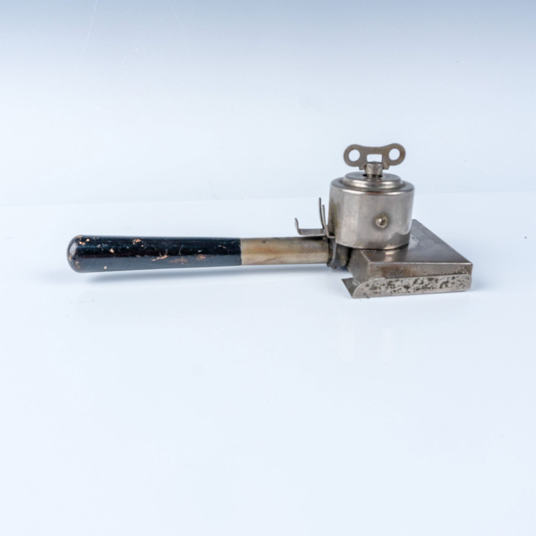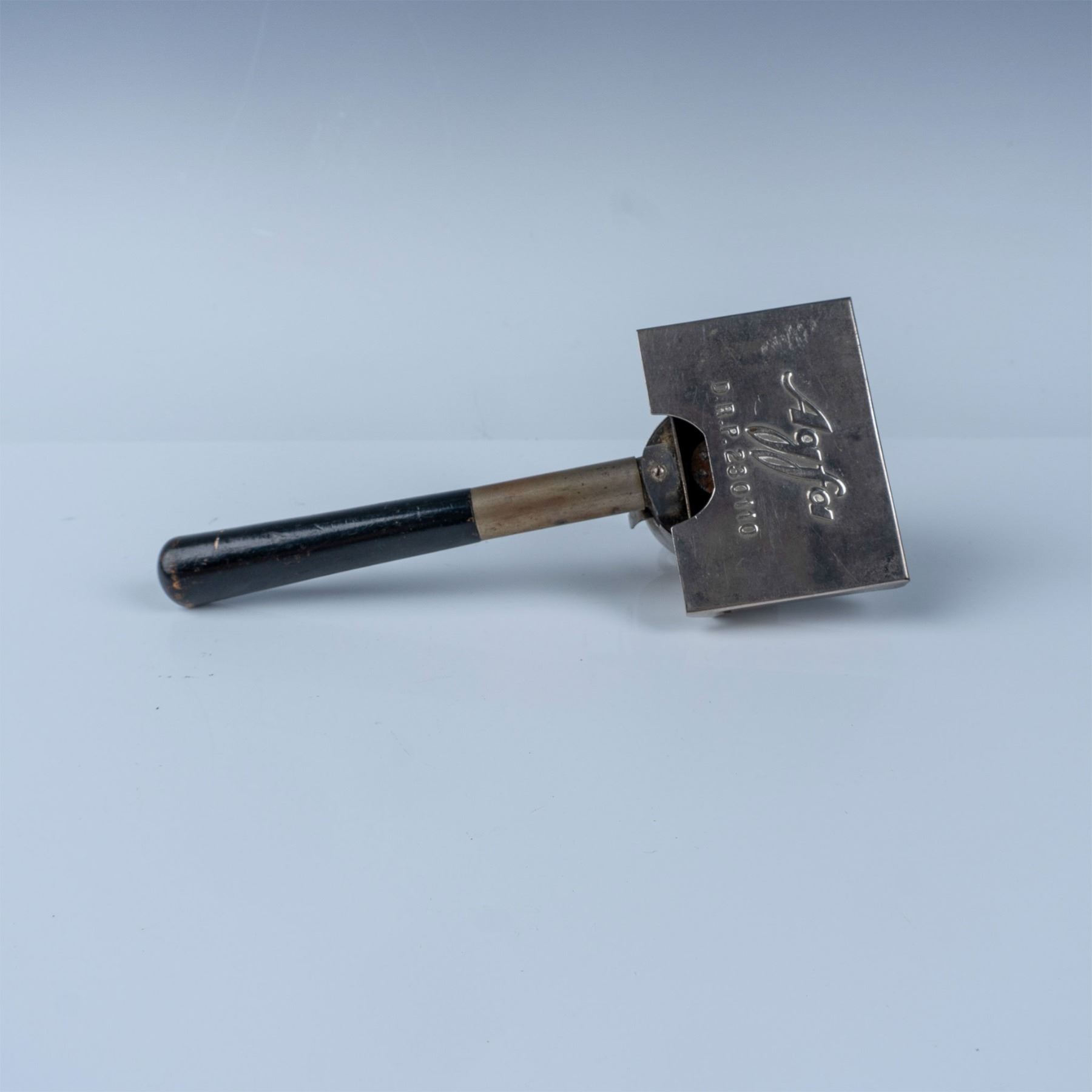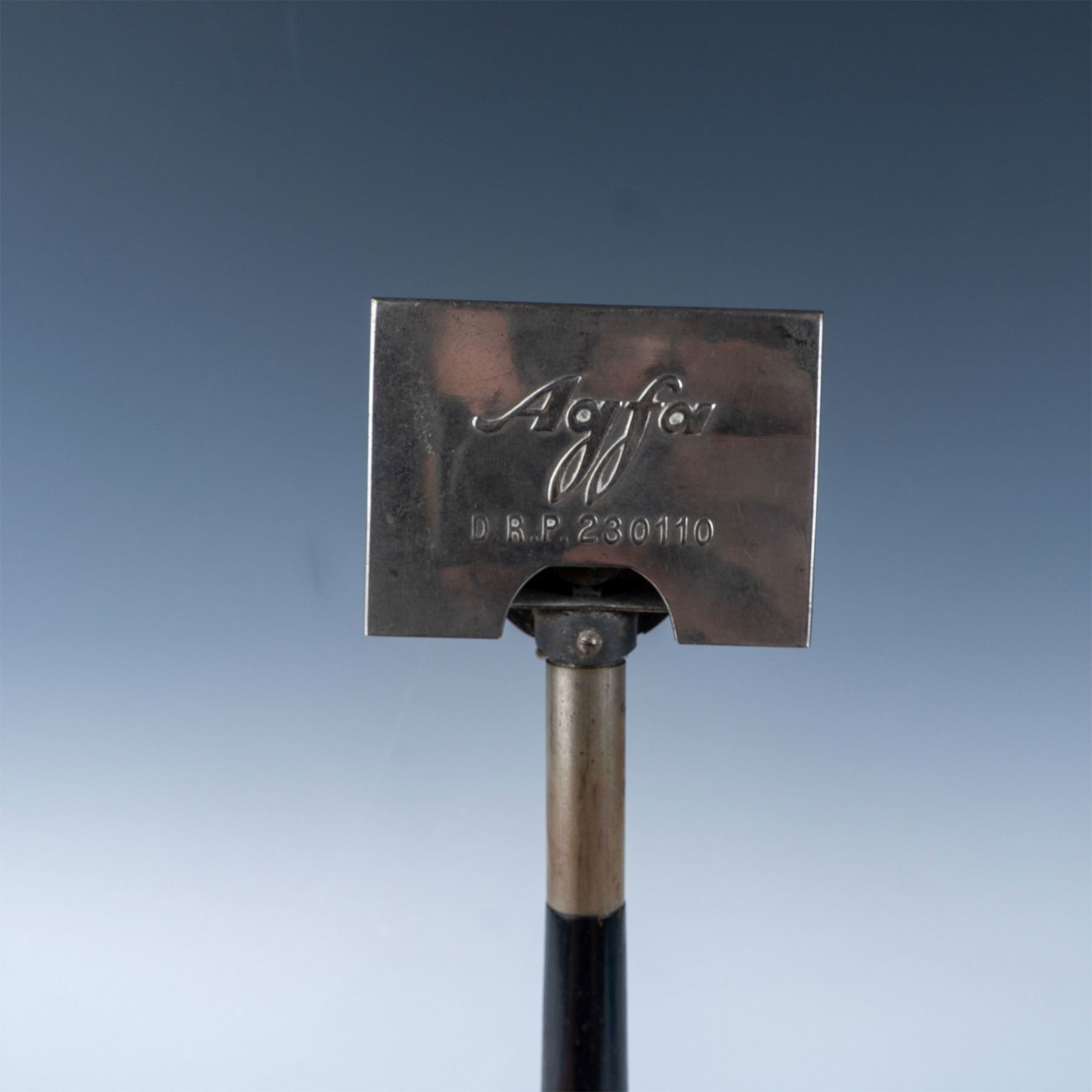 A rare vintage Agfa magnesium powder flash device, marked Agfa with the designation (handheld) D.R.P. No. 401015. This antique photographic accessory features a metal body and a black handle, showcasing its original craftsmanship. Magnesium powder flashes were used in early photography for creating bright, instantaneous light, making this a fascinating artifact for collectors of vintage photographic equipment.