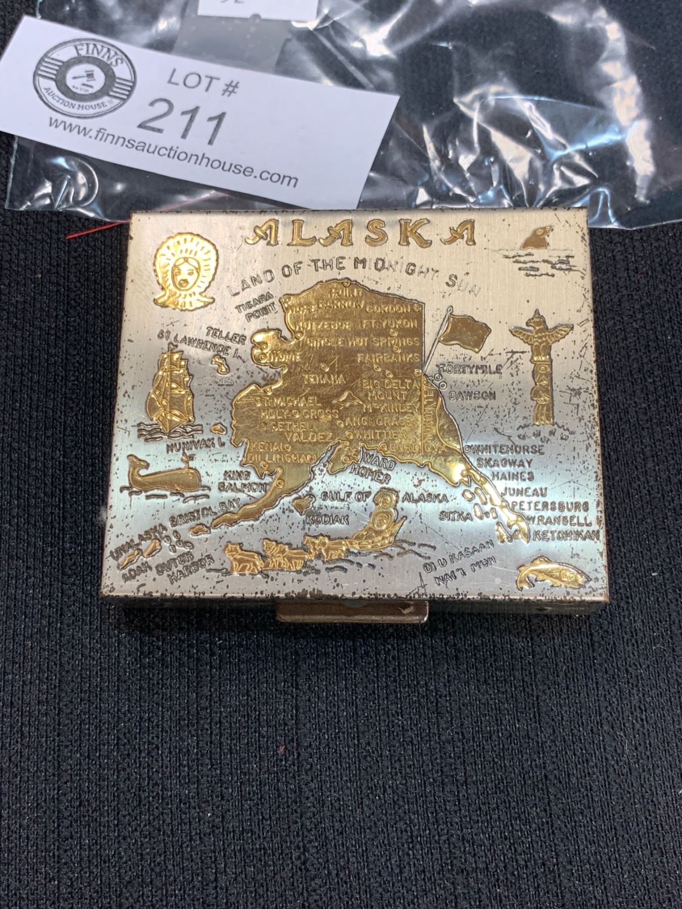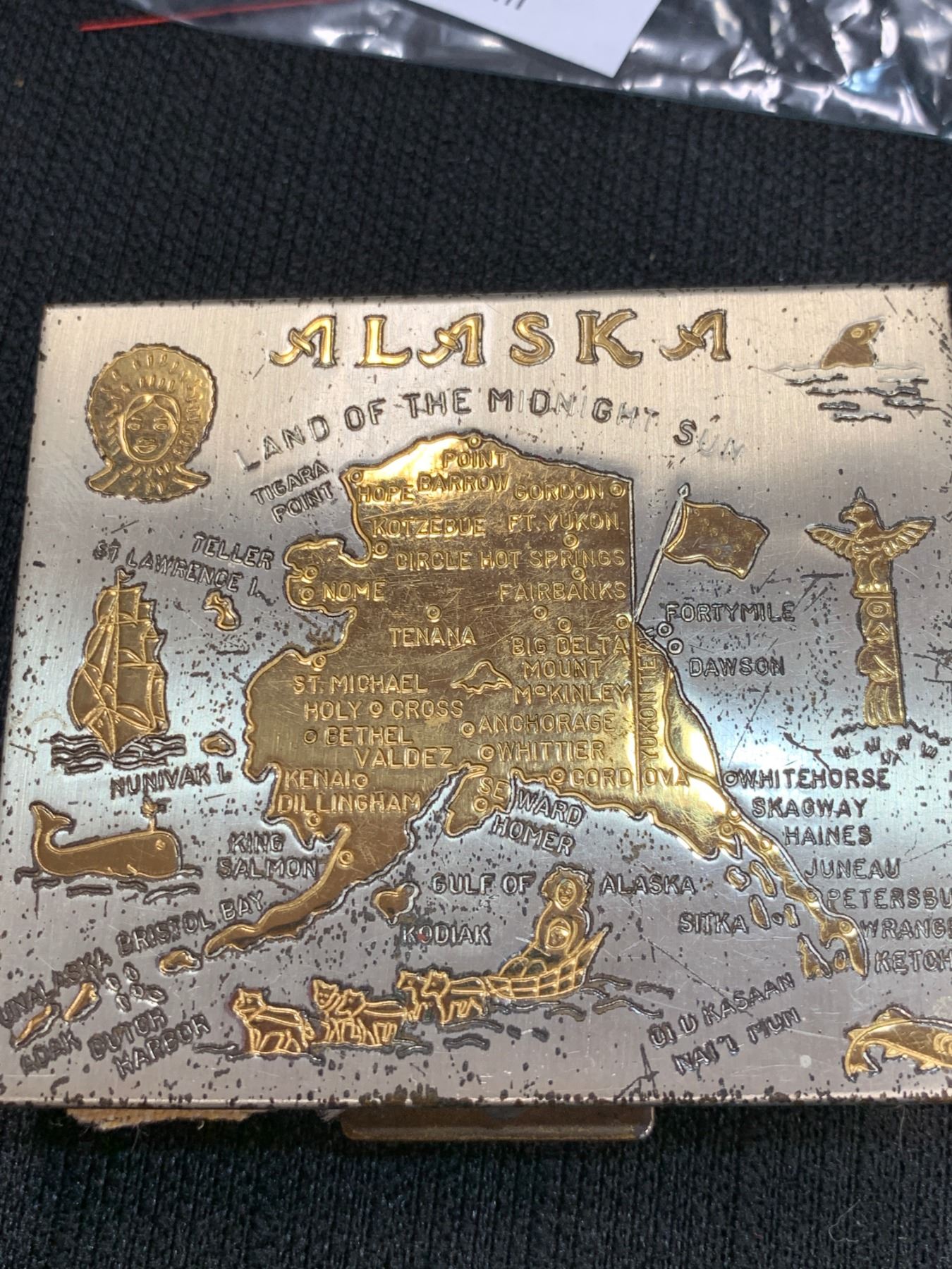 Vintage Alaska Souvenir Tin. Map of Alaska
