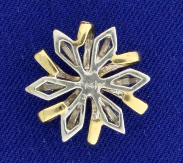 In 14k yellow and white gold. Contains a natural 2.5mm Alexandrite color changing gemstone and six high quality .02ct round diamonds, SI clarity/H color. 3/4" diameter. 3.7g.