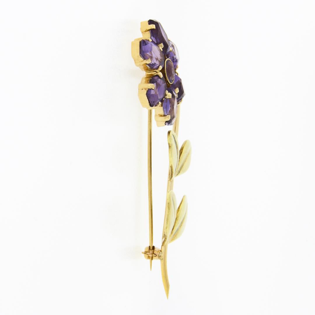 Vintage Allsopp Bliss 14k Two Tone Gold 10.55 ctw Amethyst Large Flower Brooch P