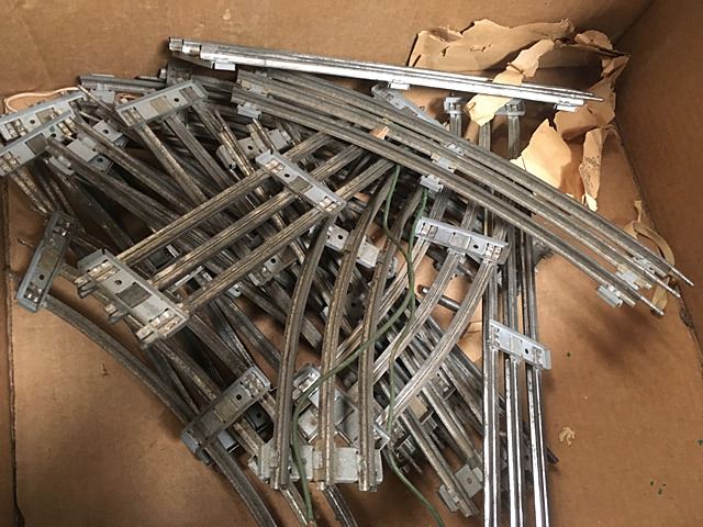 Vintage American Flyer "The Potomac line toy train set with engine, 4 cars, tracks, and vintage Christmas / Winter figurines in original box "Winterfreuden, Made in Western Zone of Germany".