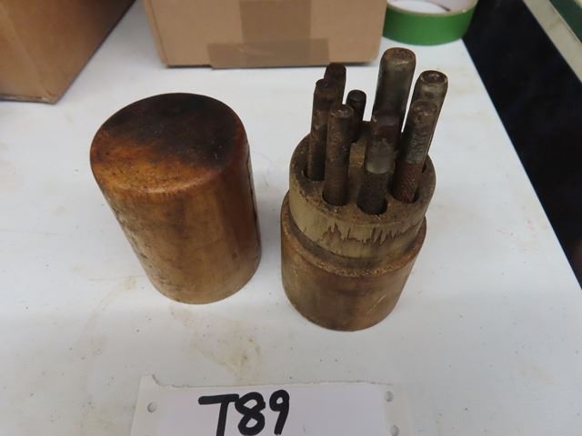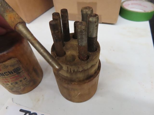 Vintage Antique LS STARRETT S565WB 8 drive pin punch set in round with WOODEN CASE. Wow!