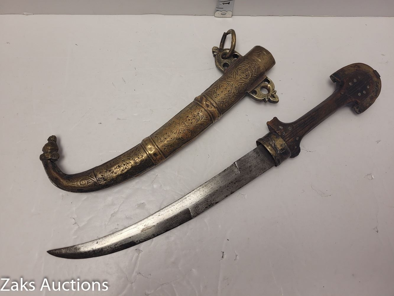 Vintage Antique Middle Eastern Inscribed Scabbard Sword with Metal Sheath