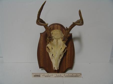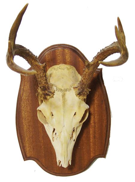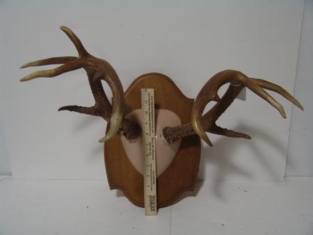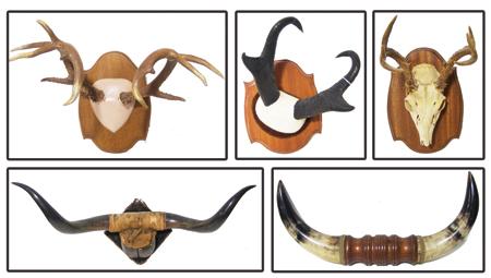 Five mounted pieces in all; white tail deer, mule deer, pronghorned antelope. Ex: Ben Thompson collection. 28" to 18"