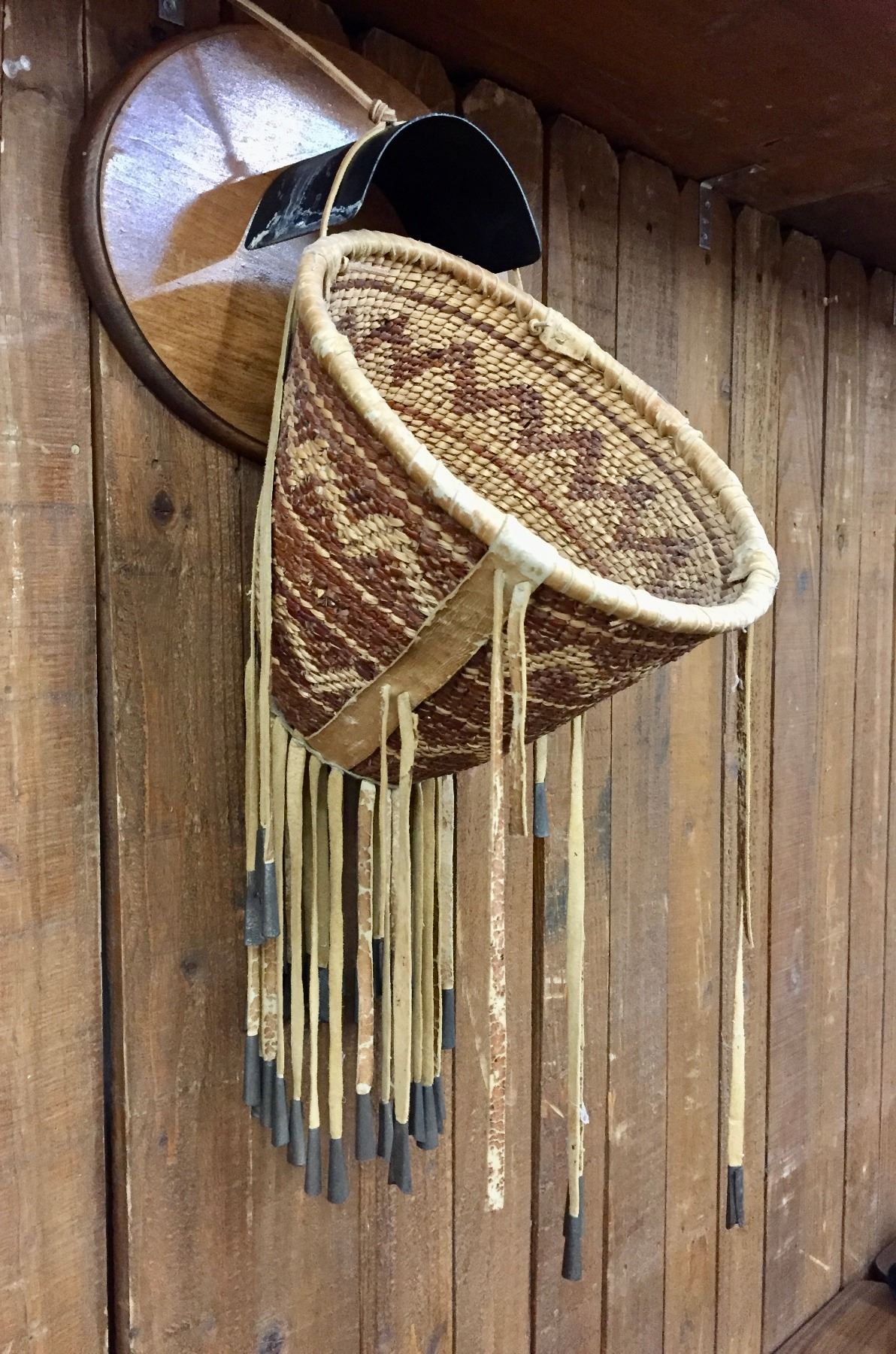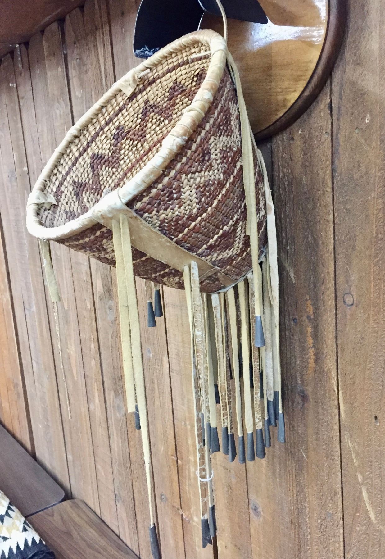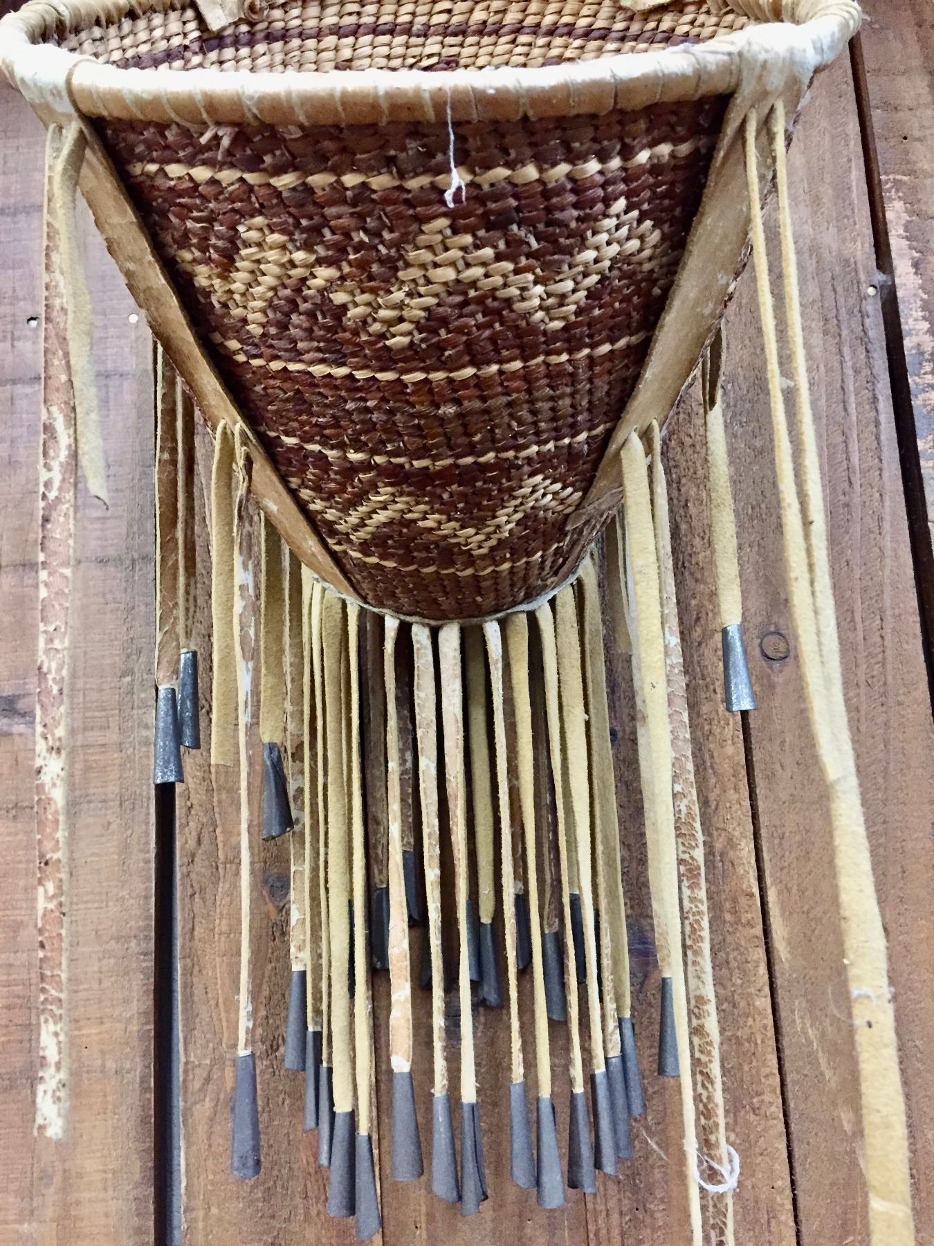 Description: For your consideration we offer for sale this vintage Apache Burden Basket featuring nice designs and leather accents. Maker: Unknown Apache Artist. Approx. Age: Circa 1960s. Size: 11” round x 8-1/2” deep. Condition: Good for its age, normal wear expected. Please look closely at the pictures - they are an important part of our description. Shipping: There will be a $10 handling / packaging fee for shipping this lot. The actual cost of postage will be added on top of that.