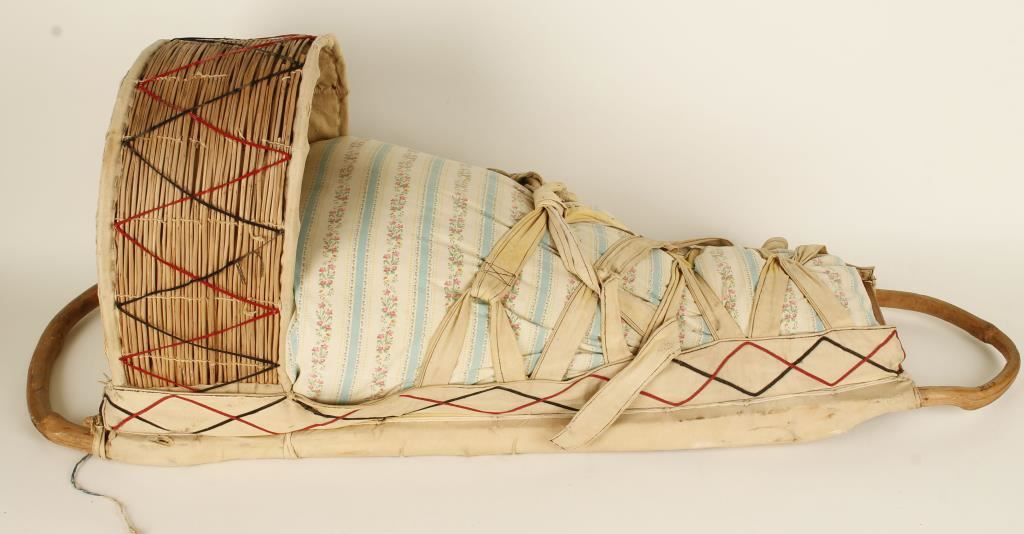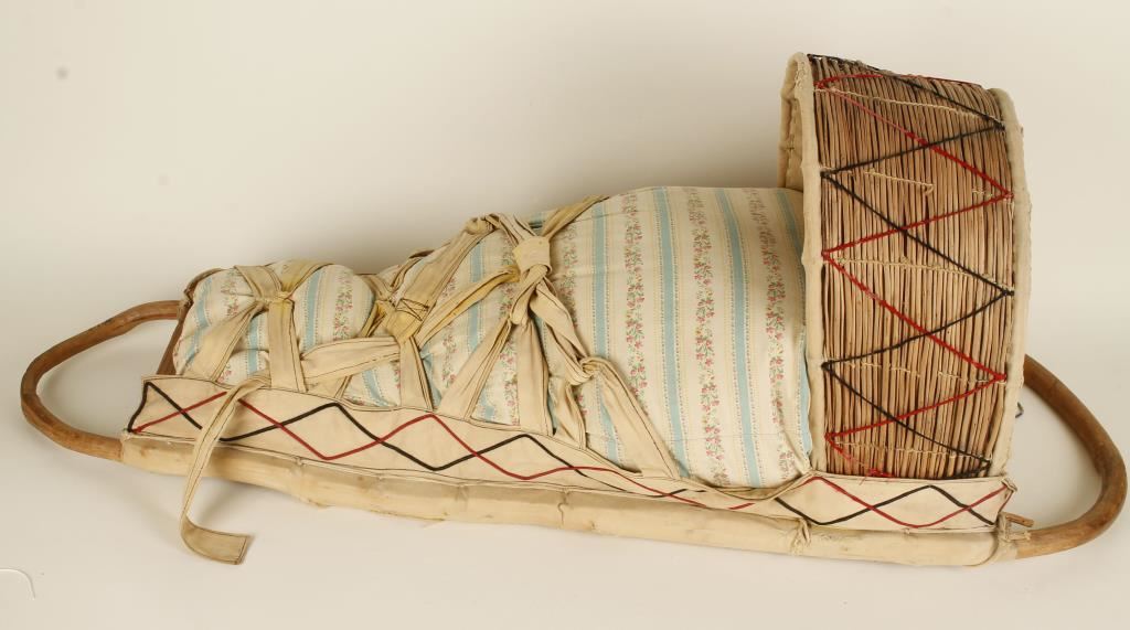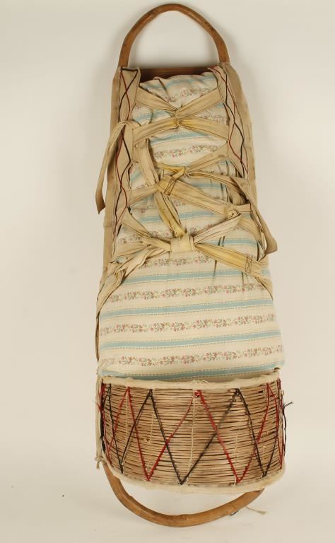 Wood and cloth construction with black and red piping. 39"x12", Shows age and use.