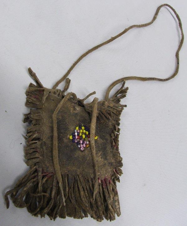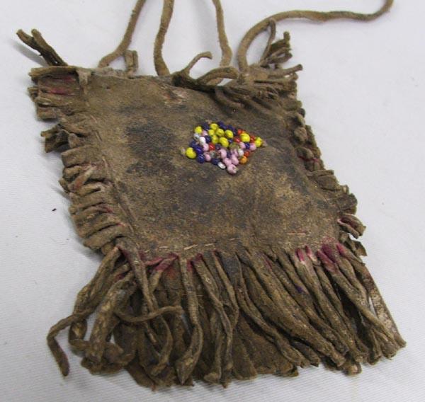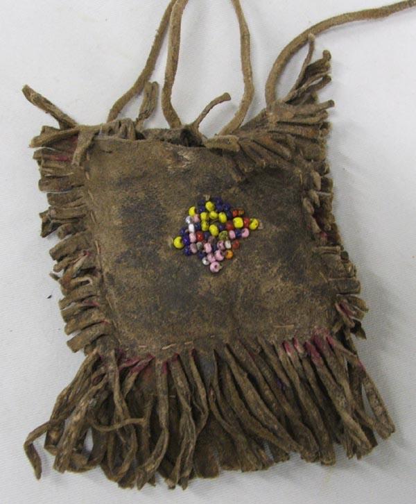 Vintage Apache Fetish Hide Bag, measures approx. 4'' x 3''. SHI $15.
