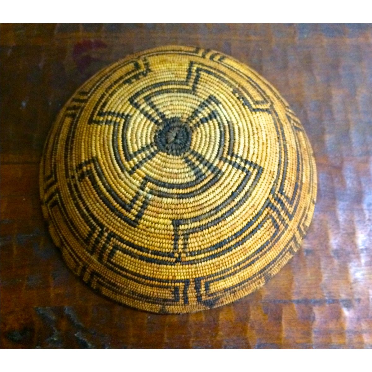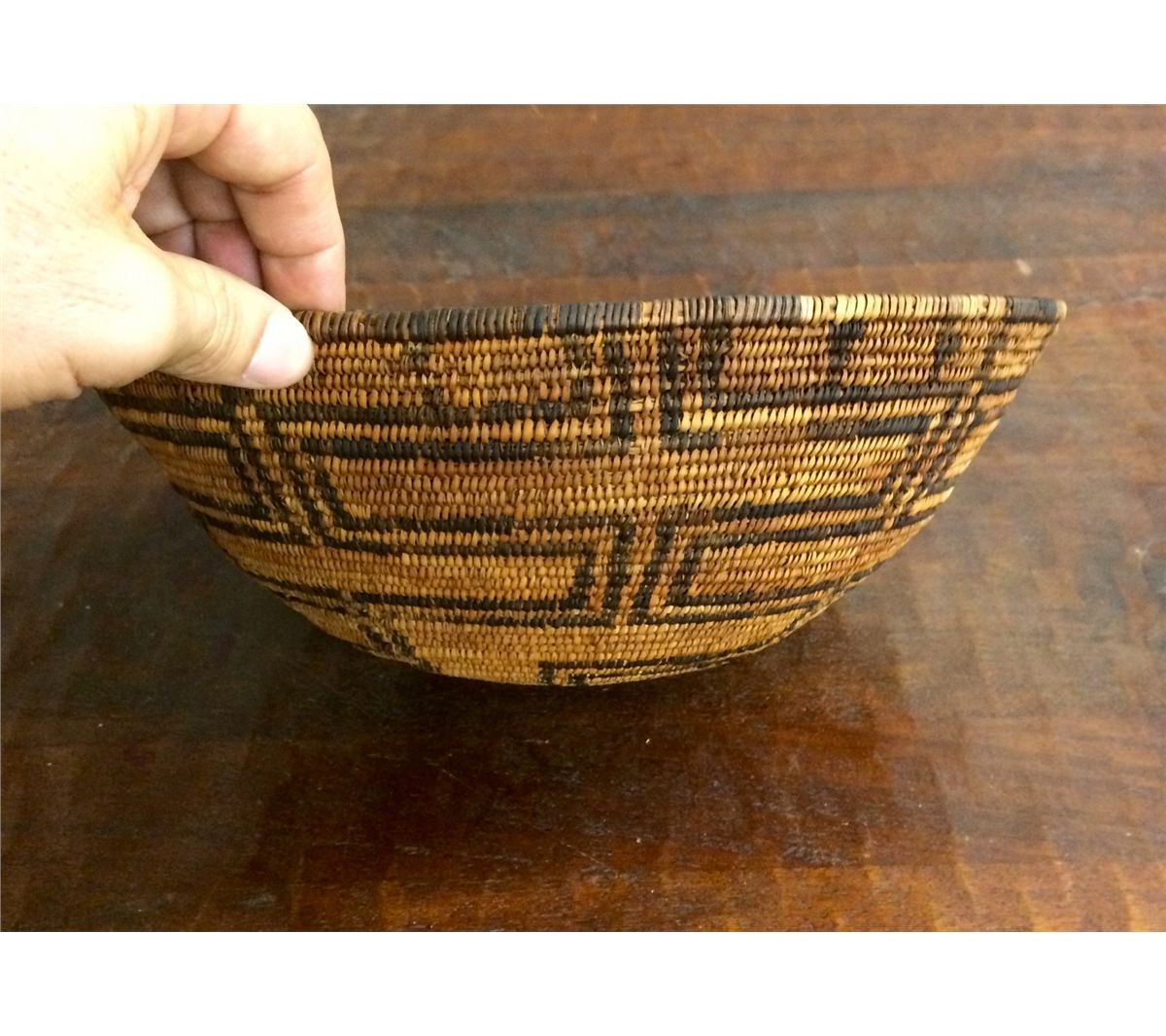 This vintage Apache basket has a really nice geometric design. It is made from Willow and devils claw. It measures approximately 12” wide by 4 ½” deep.