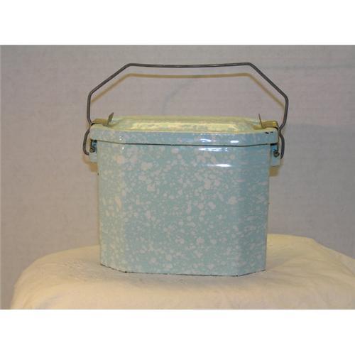 </font></strong>This French lunch box is a pastel aqua blue/green with white speckles. It is in overall good condition. On one side are some very minor scratches. The height stated in measurements does not include the handle. It adds another 2 inches to it. </font>