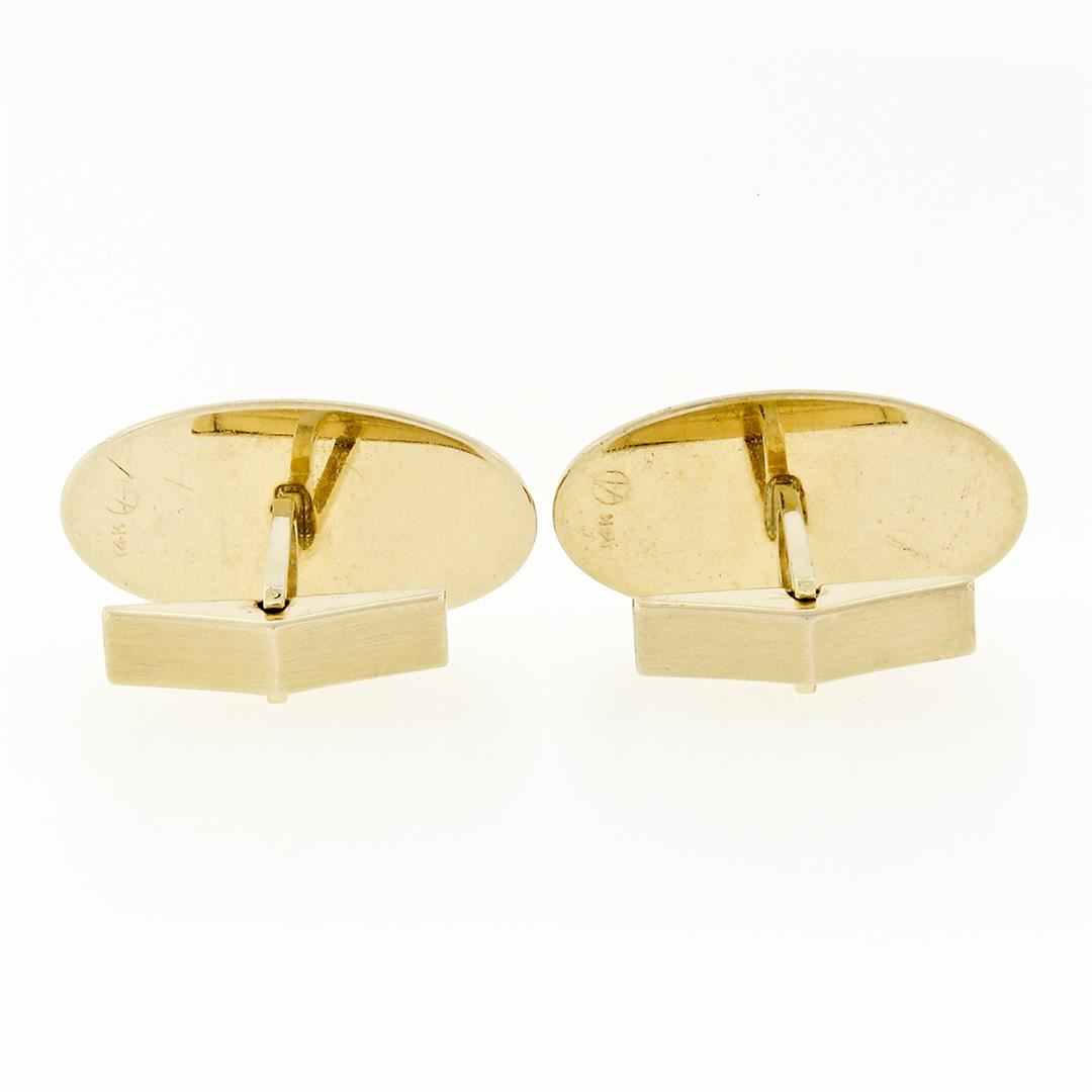 Vintage ArtCarved Men's 14k Gold Florentine Finish Grooved Frame Oval Cufflinks
