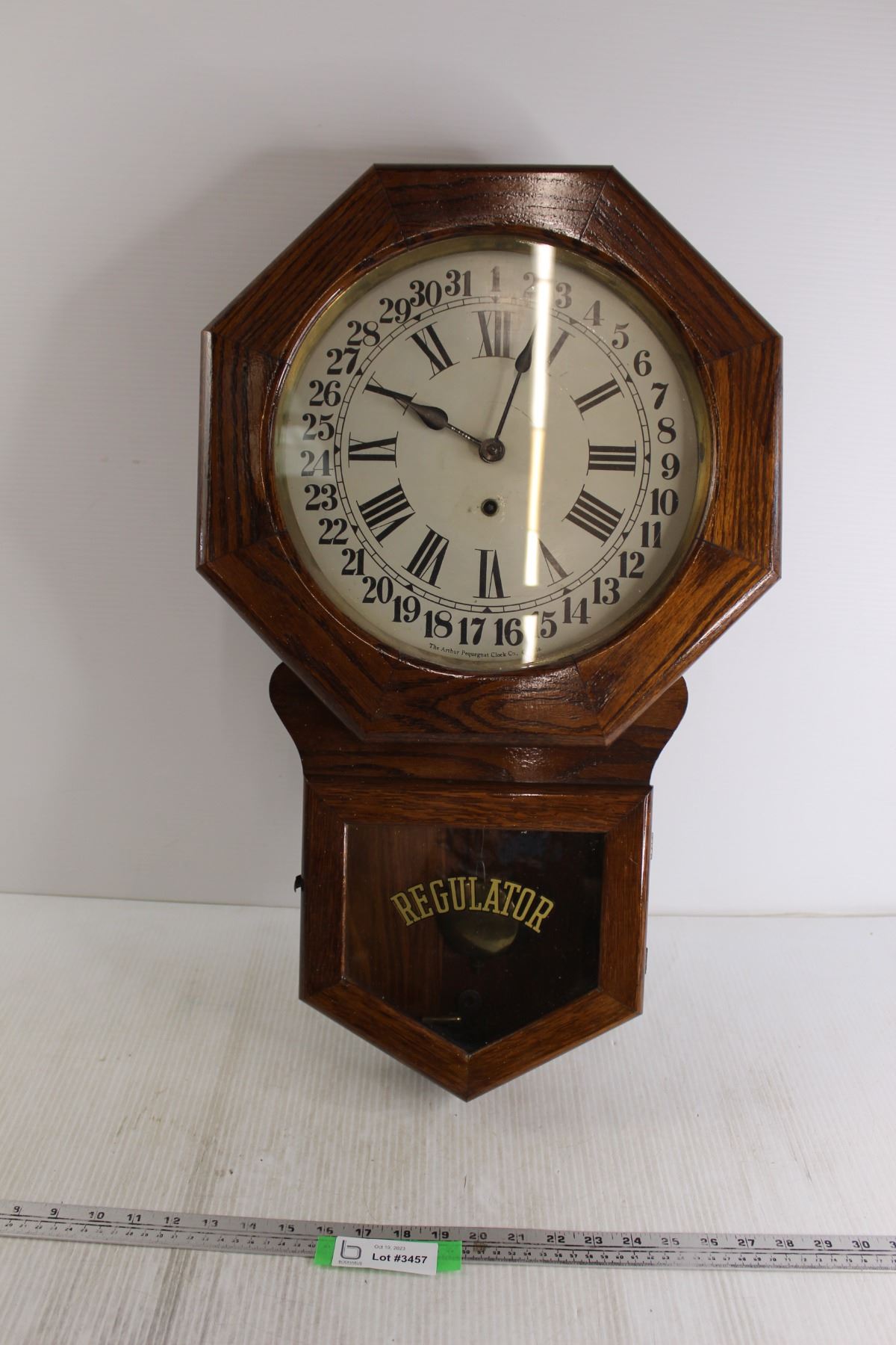 Vintage Arthur Pequegnat Regulator Wall Clock w/ Key and Pendulum - Missing Day Hand - Untested