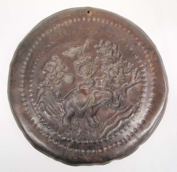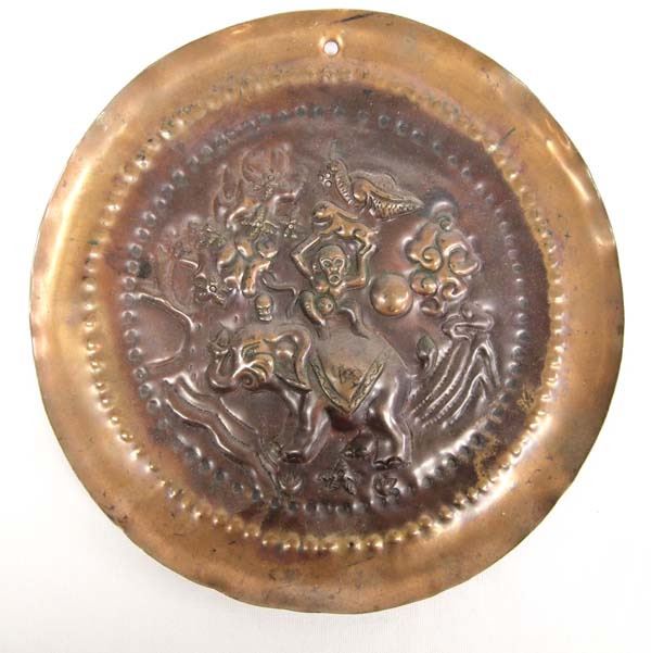 Vintage Asian Copper Embossed Plate. With its splendid design this item measures 8'' in diameter.