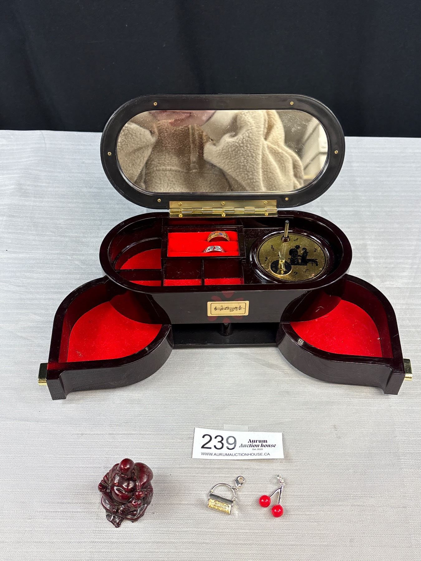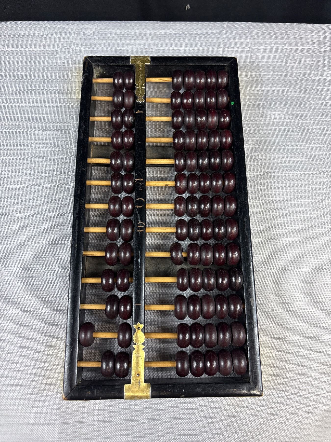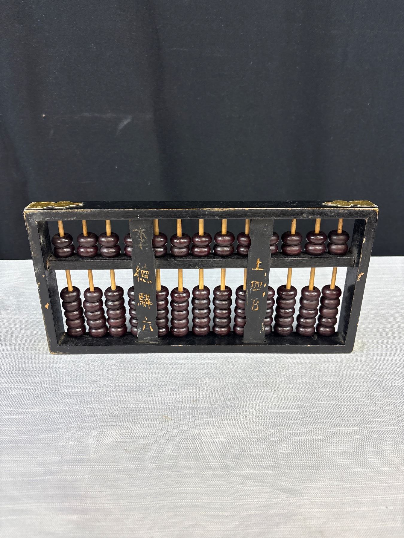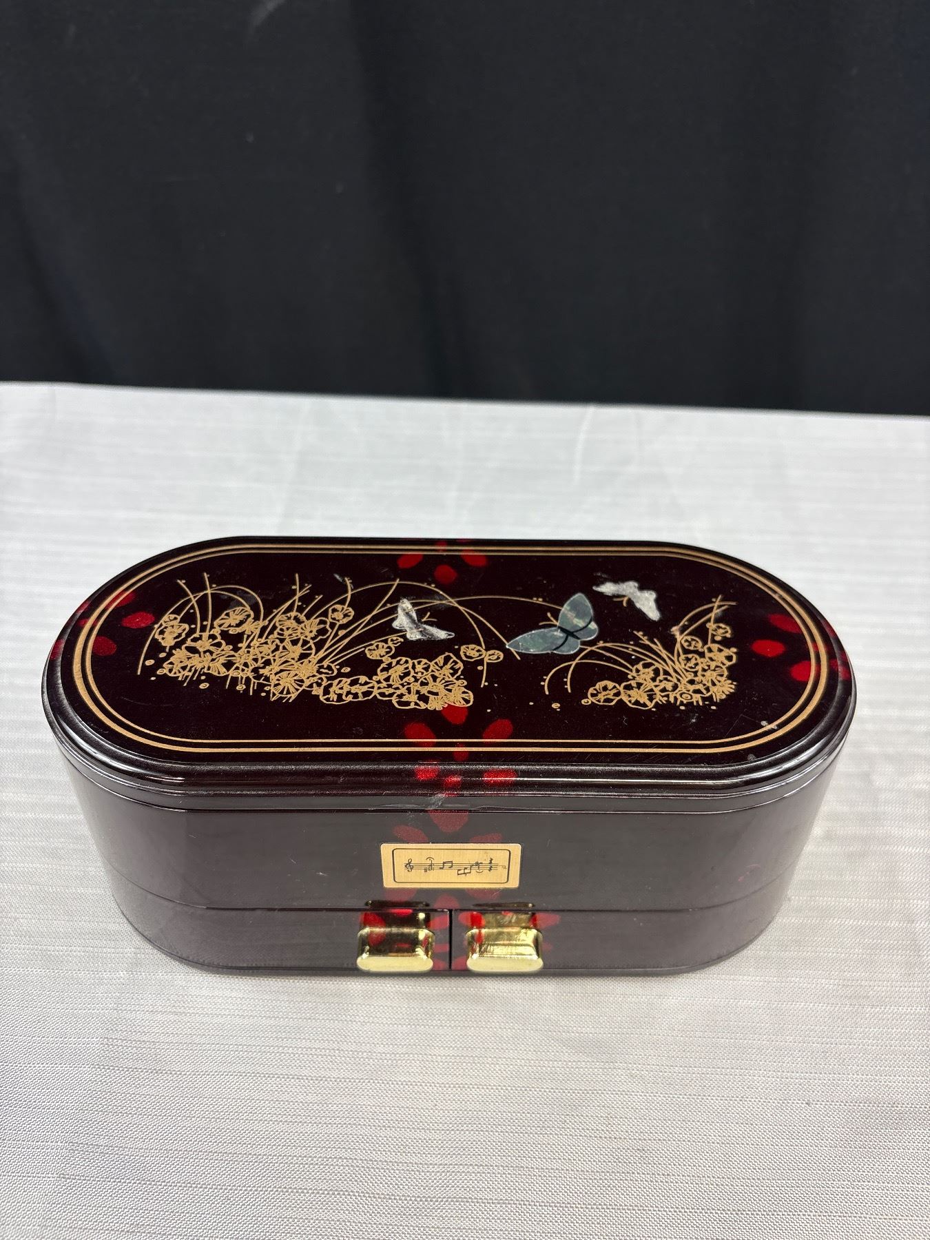 Vintage Asian Musical Jewelry Box w/Contents, Wood Abacus and Bamboo Style Jewelry Stand