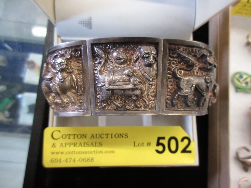 Non Ferrous Metal. Appears to be Silver Alloy, but untested. Well made. 1 1/4" wide.