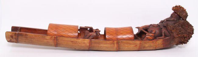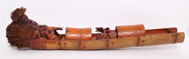 Vintage Asian fisherman in a canoe, finely carved from a single piece of large diameter bamboo. SIZE: see attached ruler photo. Photos are part of the description representing the condition report and can be used for authentication prior to the sale date. Pangaea Auctions urges Bidder's to view all attached photos in detail.