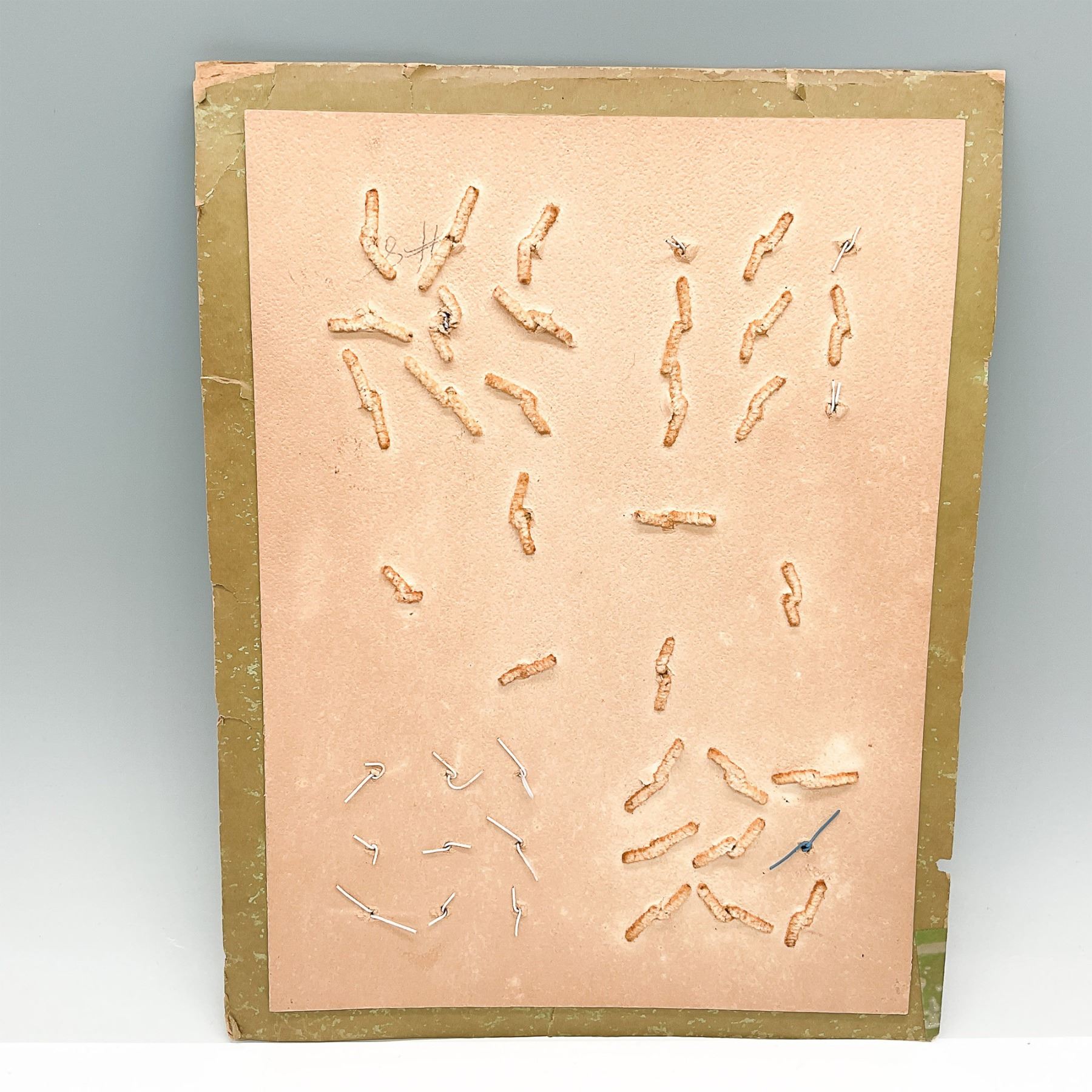 A vintage collection of assorted buttons mounted on a decorative card, featuring a variety of materials and designs. The buttons include green glass, iridescent, metallic filigree, black enamel, and white porcelain styles, showcasing intricate craftsmanship and diverse motifs. Each button is neatly organized, making this collection a charming piece for enthusiasts or collectors. The display card is adorned with a green border and a decorative trim, enhancing its nostalgic appeal.