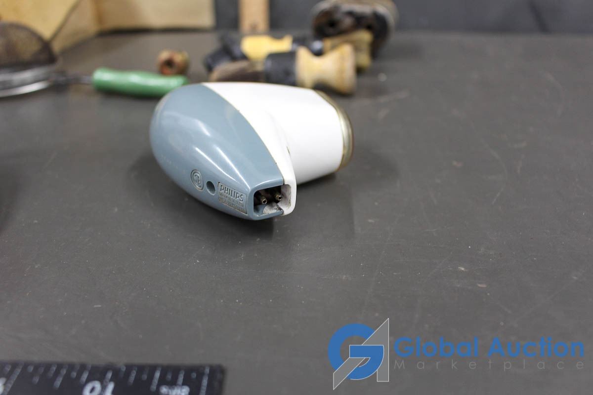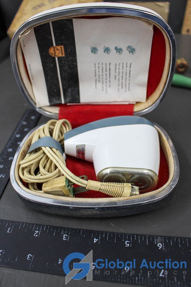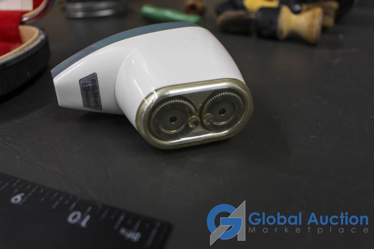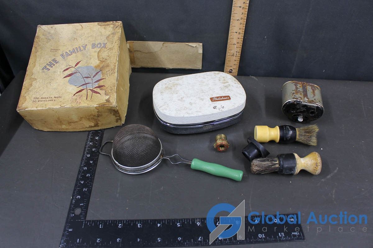 Shaving Cream Brushes, Vintage Philishave (in case), Vintage Pencil Shapener, etc
