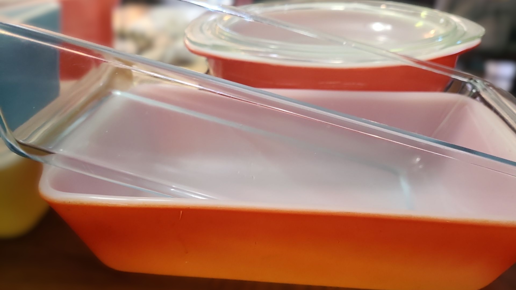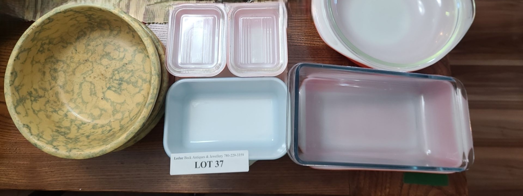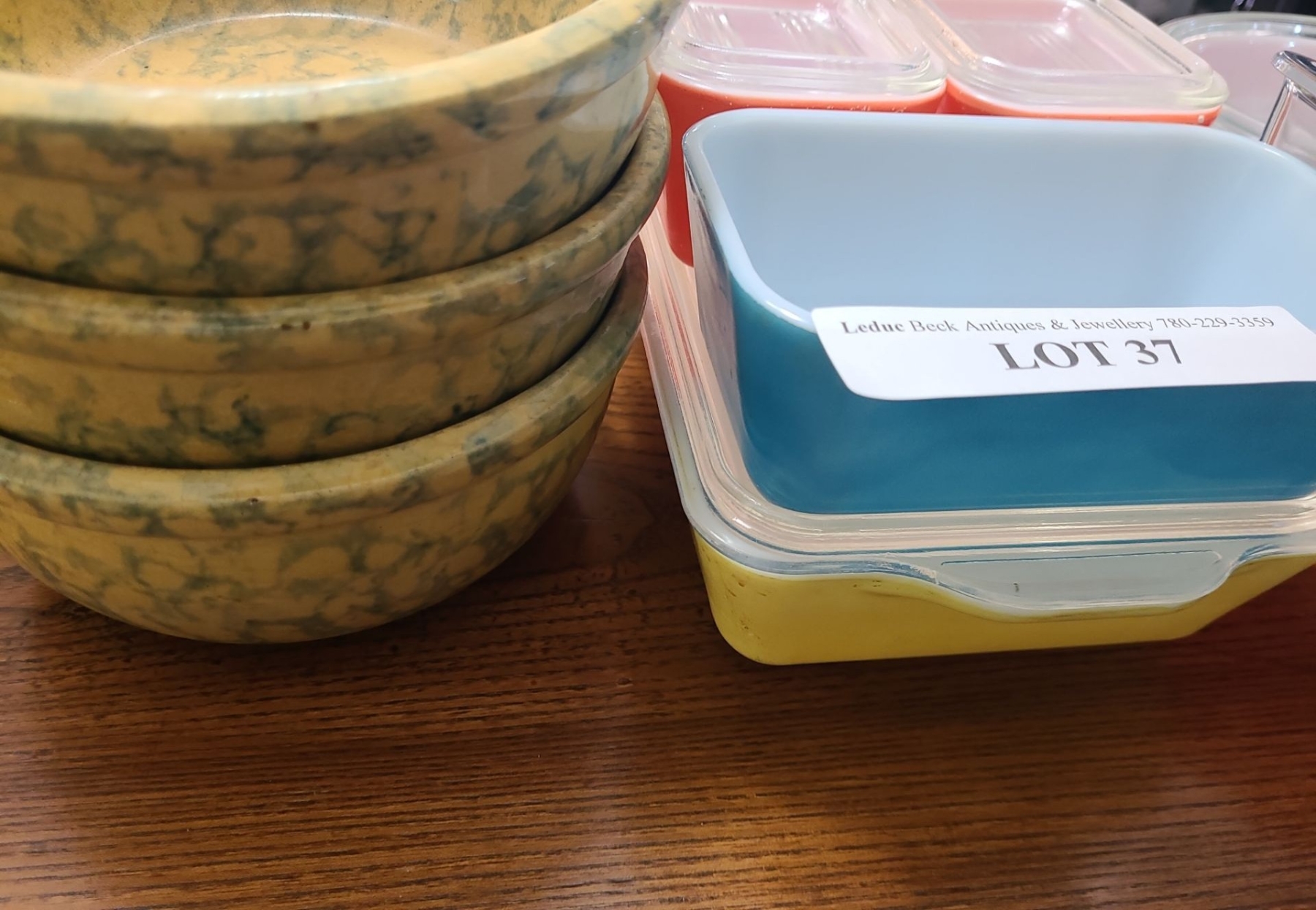 1 Weler bowl has small chip. Lg Rectangula Pyrex has chips on lid