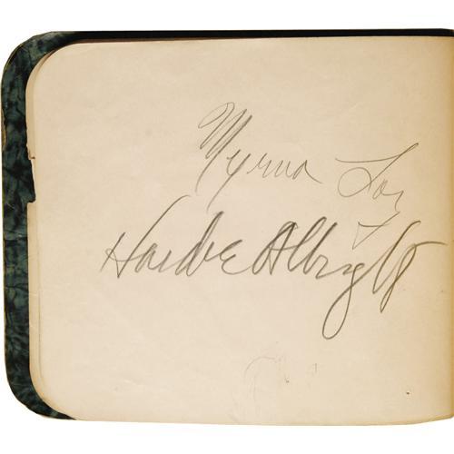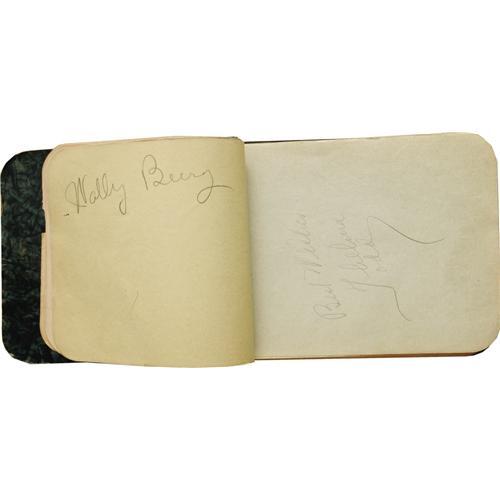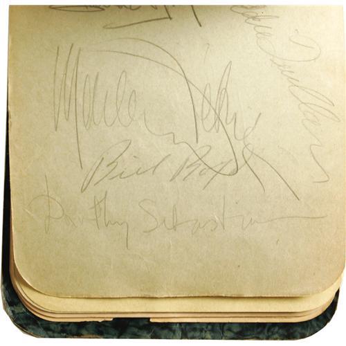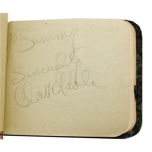 <B>Vintage Autograph Album with Numerous Signatures Including Thelma Todd.</B></I> A vintage autograph book, measuring 6.5" x 4.5" and dating circa 1931, containing approximately 45 assorted signatures from the Golden Age of Hollywood. Included are Wallace Beery, Thelma Todd, Myrna Loy, Clark Gable, Mary Astor, and others. In Fine condition with moderate wear to the cover and mild to moderate wear and tanning to the pages.<I>Accompanied by LOA from PSA/DNA.</B></I><BR><BR><b>Shipping:</b> Flat Material, Small (<a target="_blank" href="http://www.heritageauctions.com/common/shipping.php">view shipping information</a>)