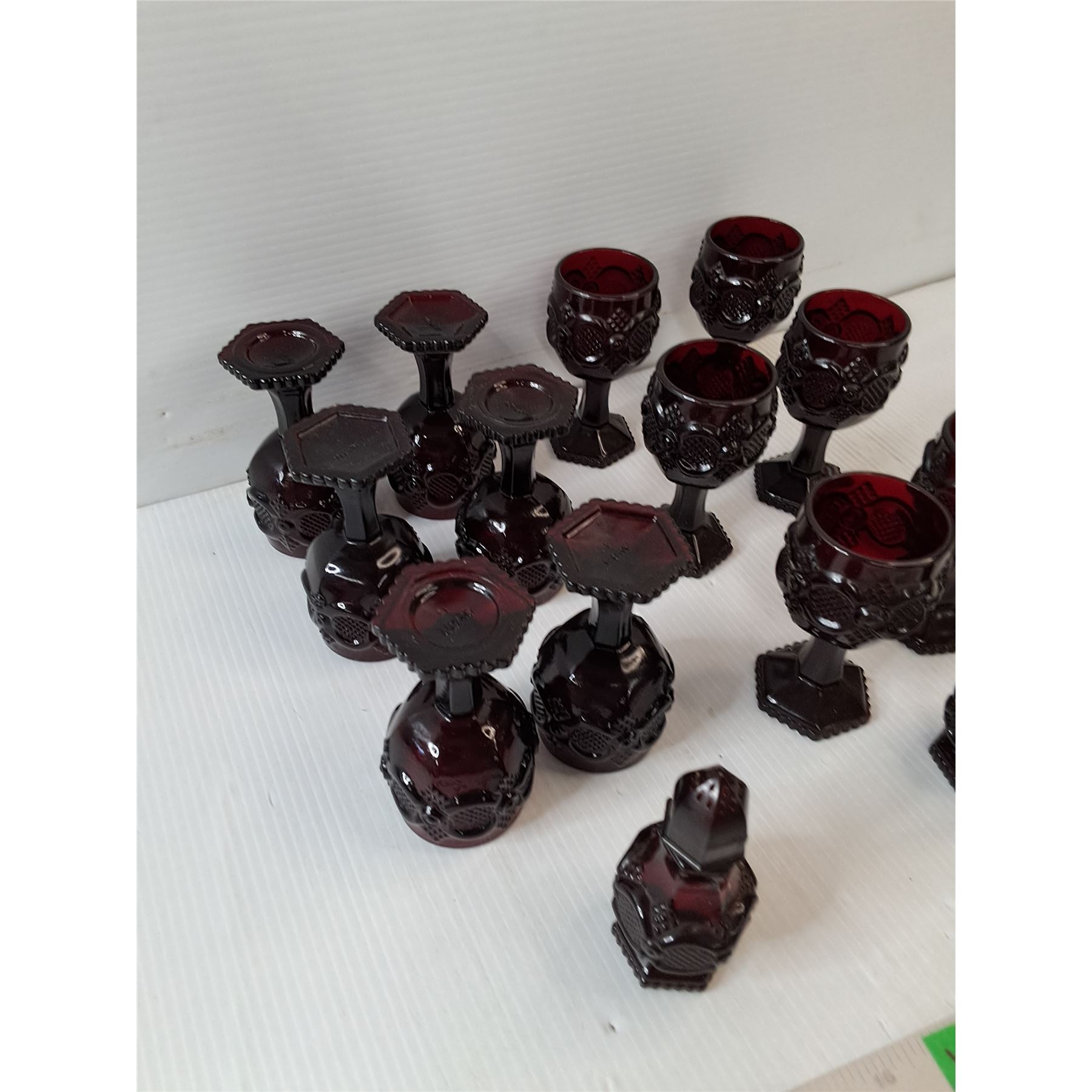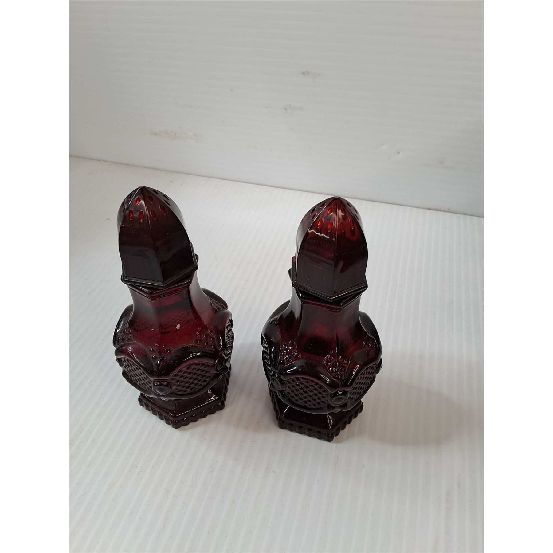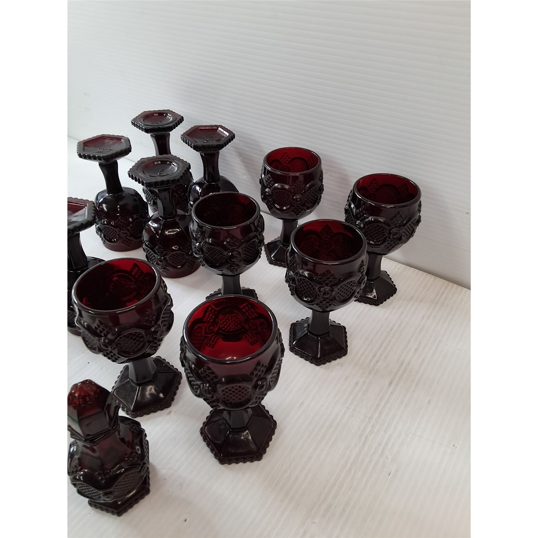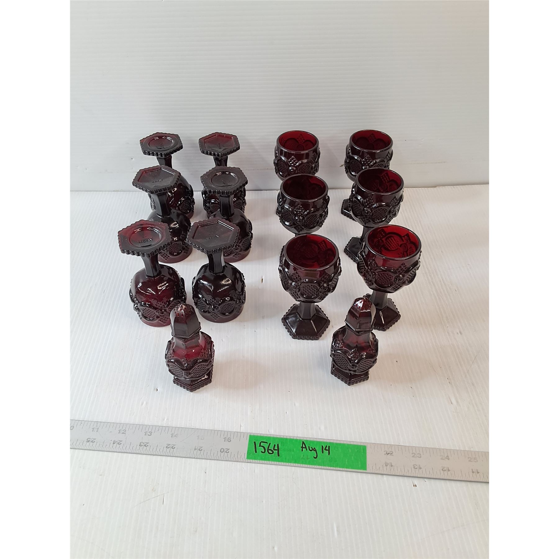 Vintage Avon Cape Cod Ruby Red (12)Glass Goblets and (2)Salt Pepper Shakers -