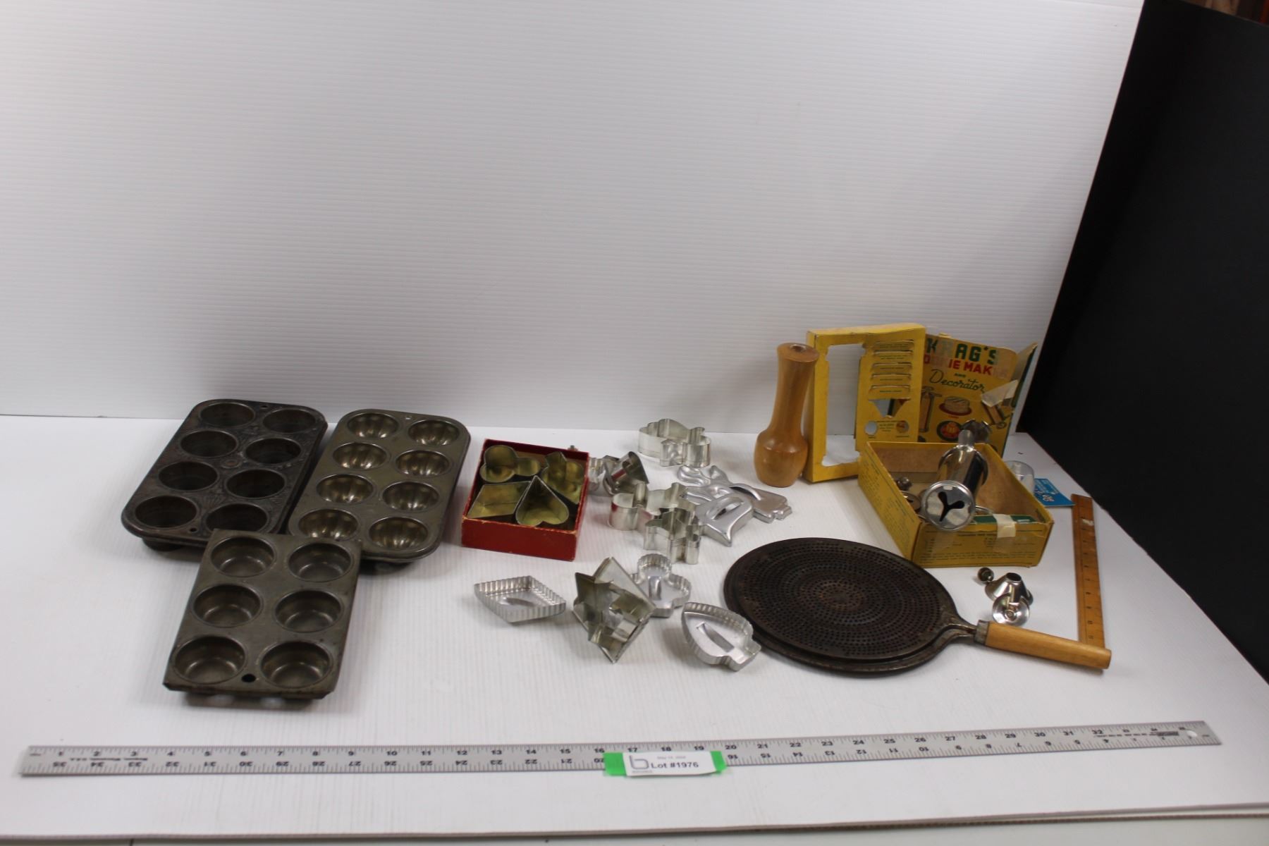Vintage Baking Items - Muffin Tin Pans, Cookie Cutters, Krag's Cookie Maker & Decorating Kit w/Original Box etc.
