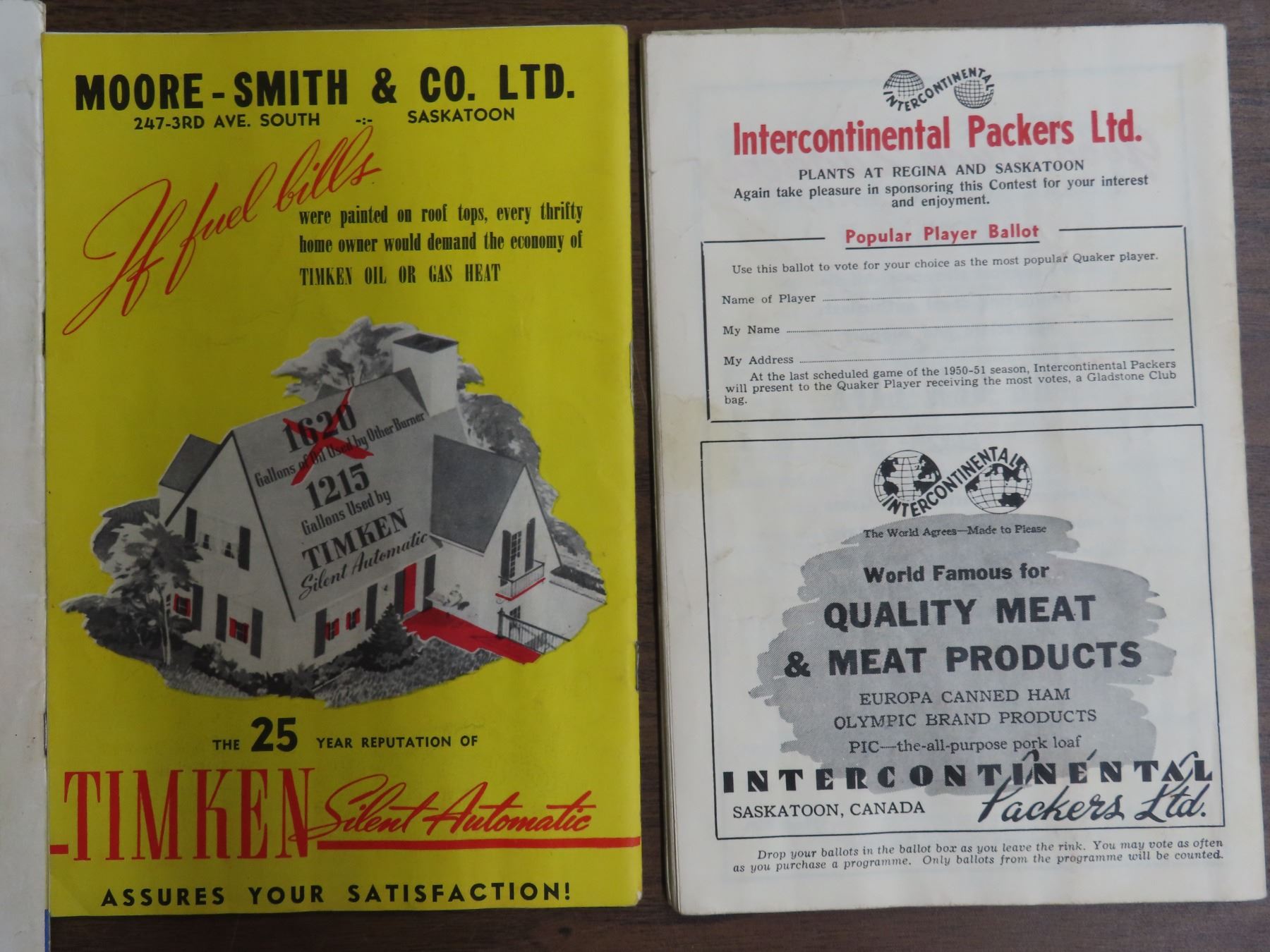 Vintage Ball Game Programs & Vintage Saskatoon Quakers programs