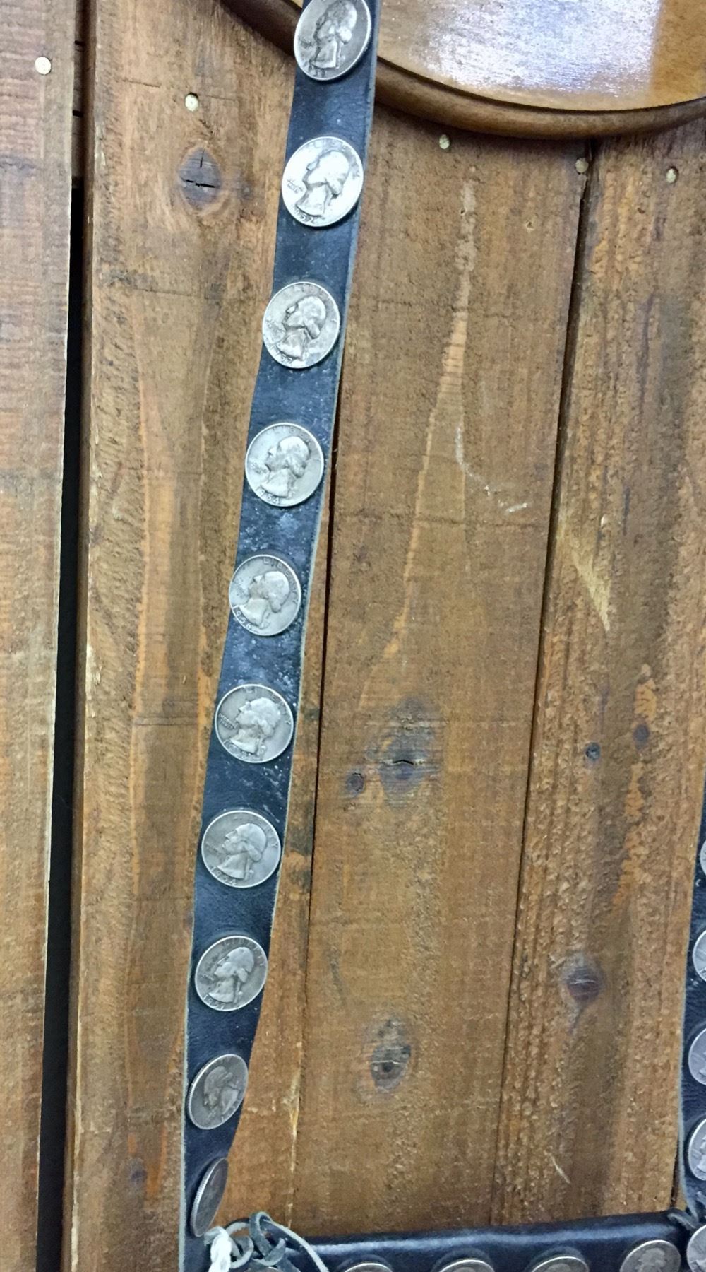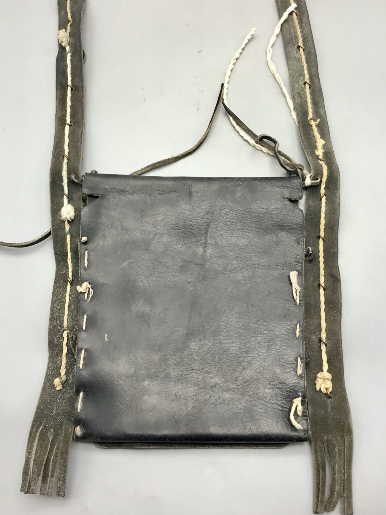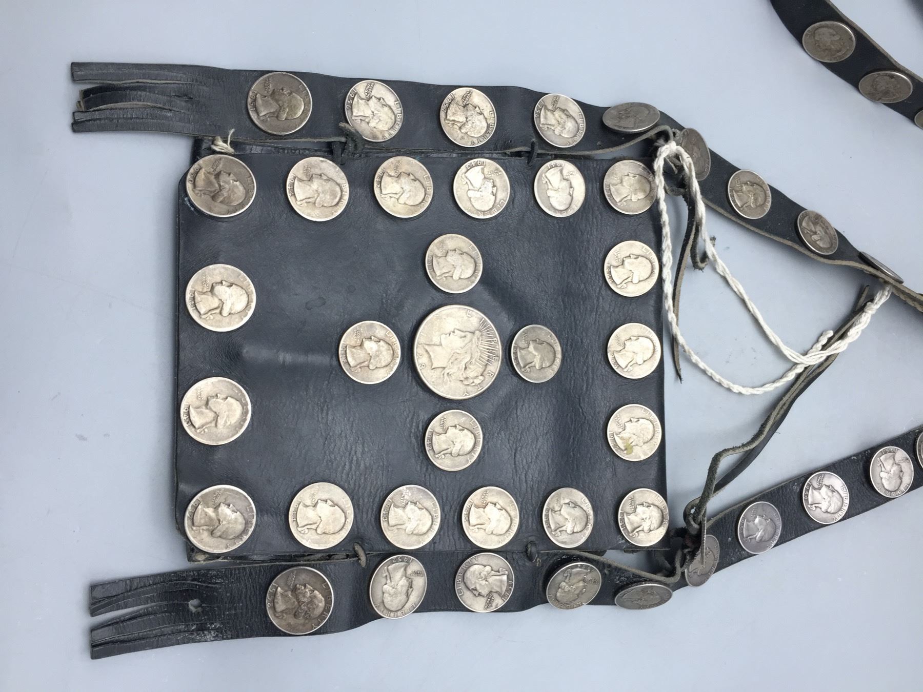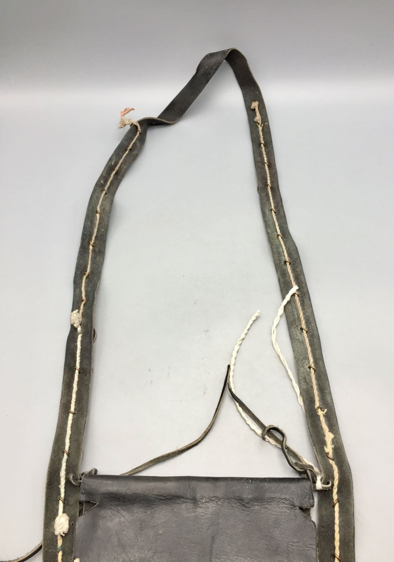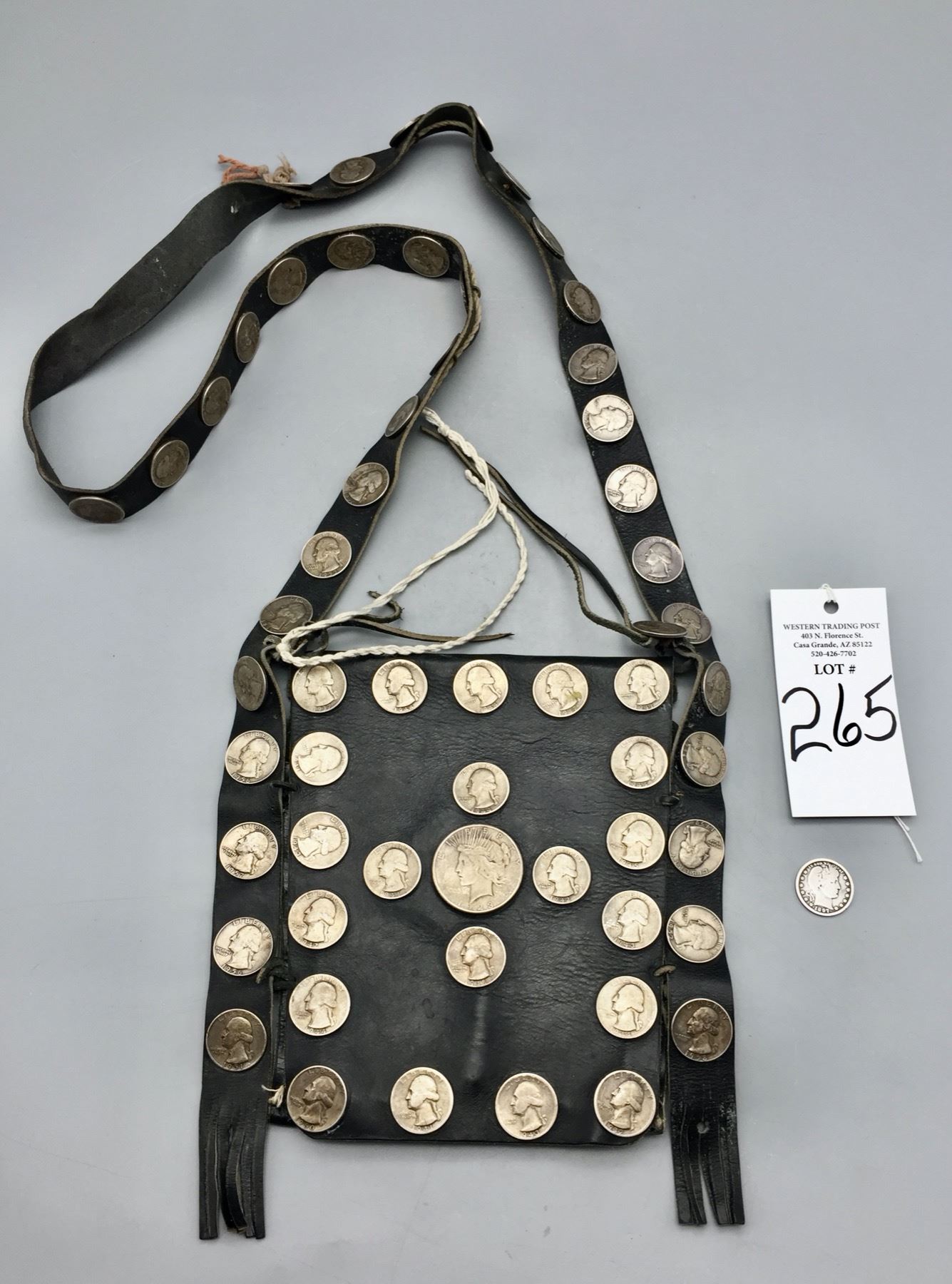 Description: Offered for sale in this lot is a great vintage bandolier bag with coin silver buttons as accents. Made with black leather. Has a nice look to it. Maker: Unknown. Approx. Age: Vintage. Size: 31†long X8-1/2†wide. Condition: Good for its age, normal wear expected. Please look closely at the pictures - they are an important part of our description. Shipping: There will be a $7 handling / packaging fee for shipping this lot. The actual cost of postage will be added on top of that.