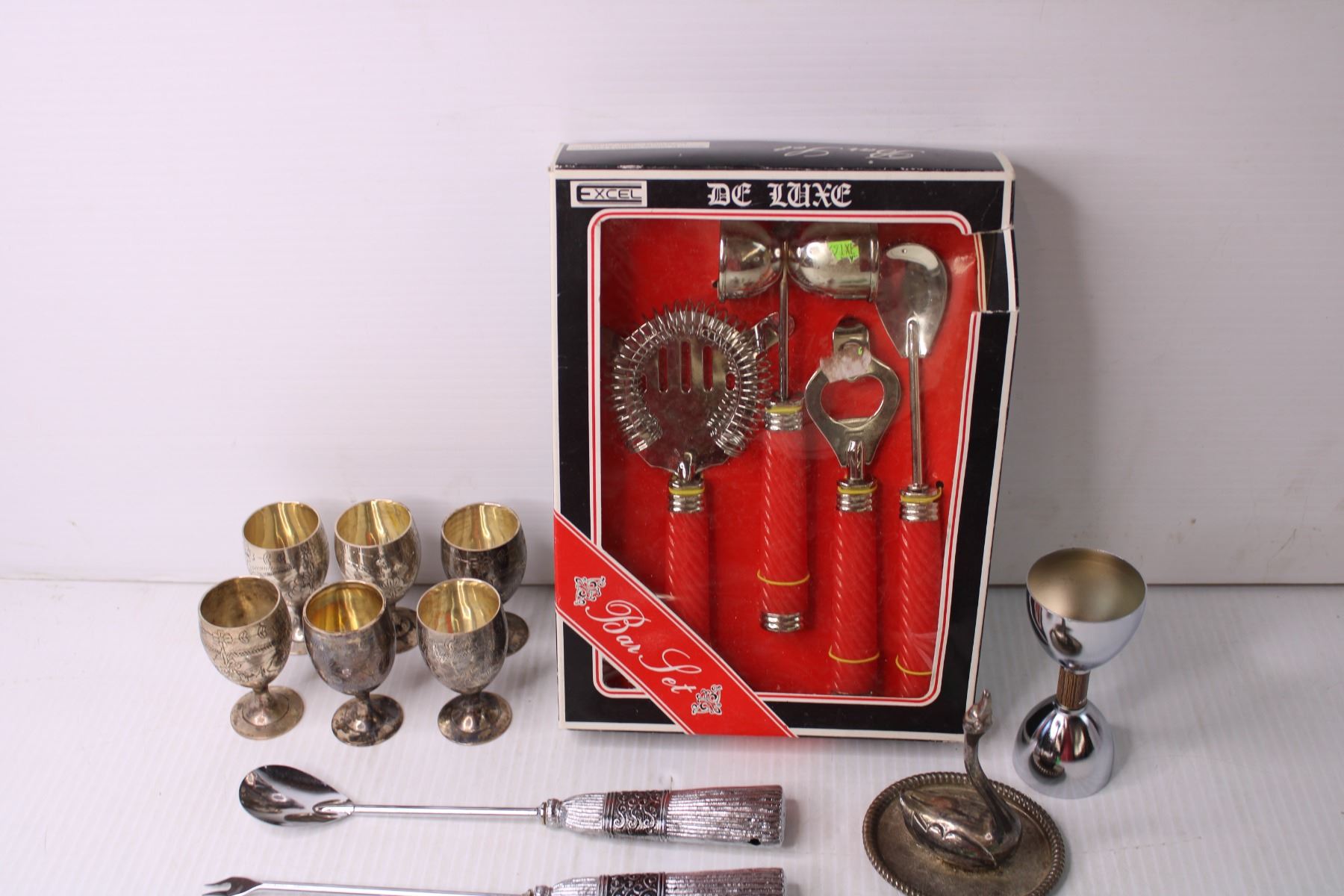 Vintage Bar Set, Curling Themed Barware, Silver Plated Mini Goblets