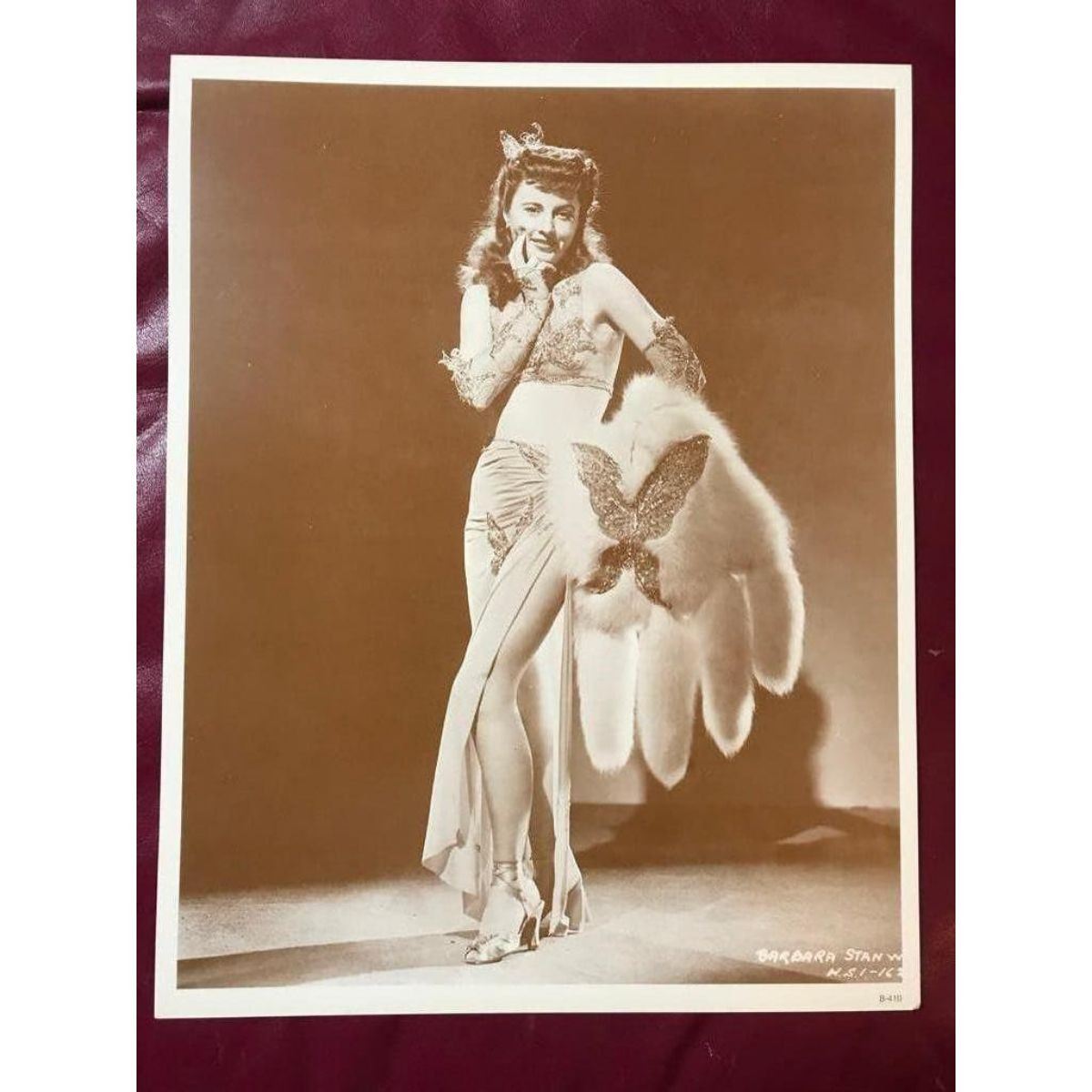 Sepia-tone photo print of 1940's actress Barbara Stanwyck. Created in the early 1990's, printed on heavy cardstock. 11" X 14".Â