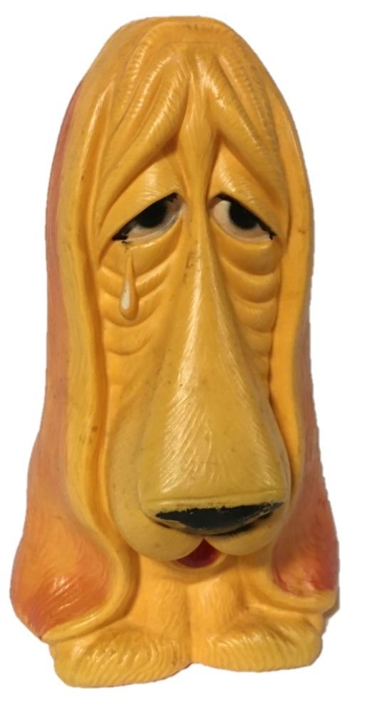 Vintage Basset Hound Dog Sad Crying Still Coin Still Piggy Bank MY TOY INC 1971 Plastic Coin bank