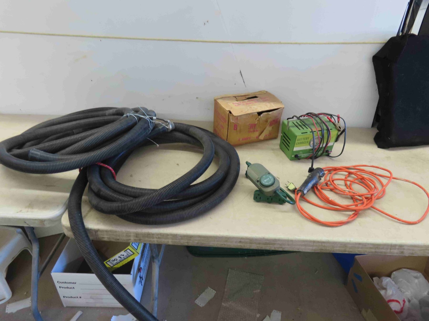 Vintage Battery Charger with Box , Trouble Light , Timer , 2 Lengths of Sump Pump Hose