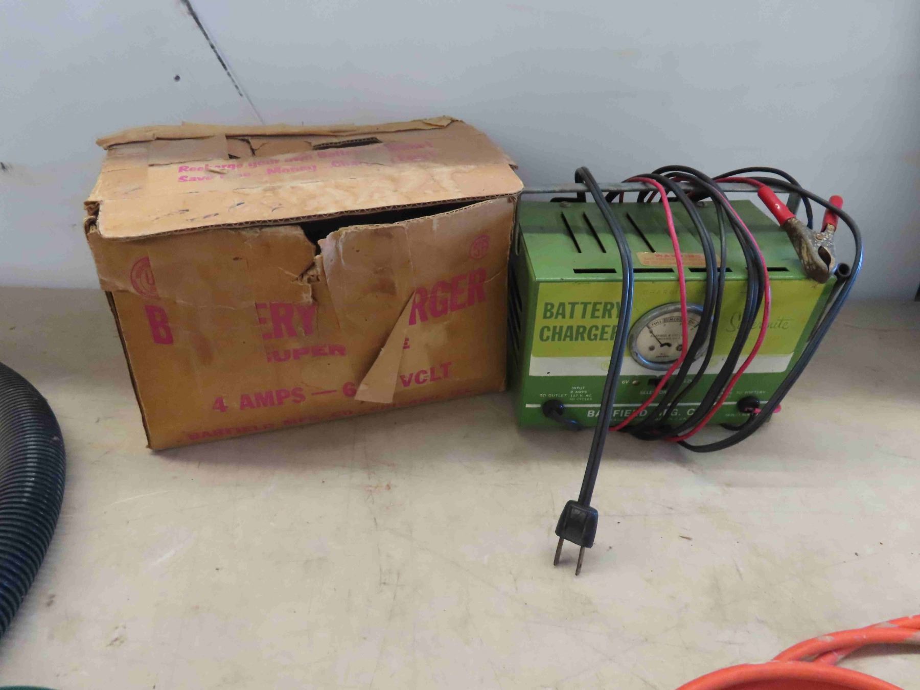 Vintage Battery Charger with Box , Trouble Light , Timer , 2 Lengths of Sump Pump