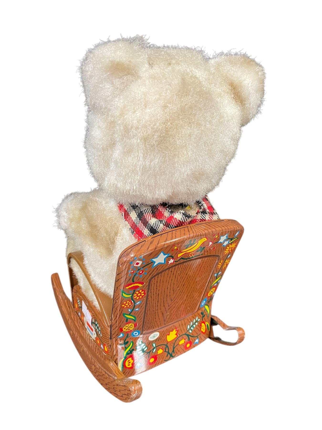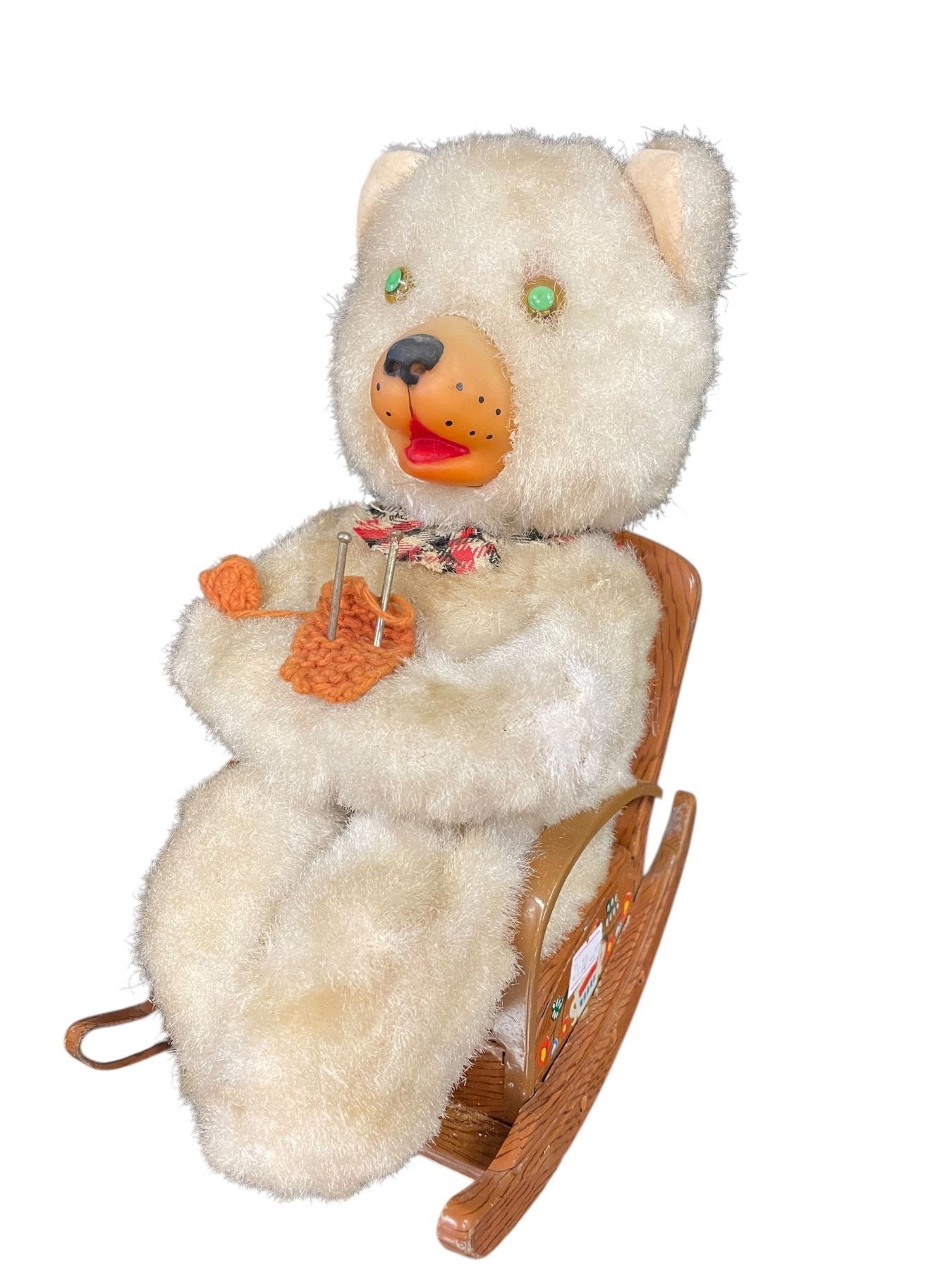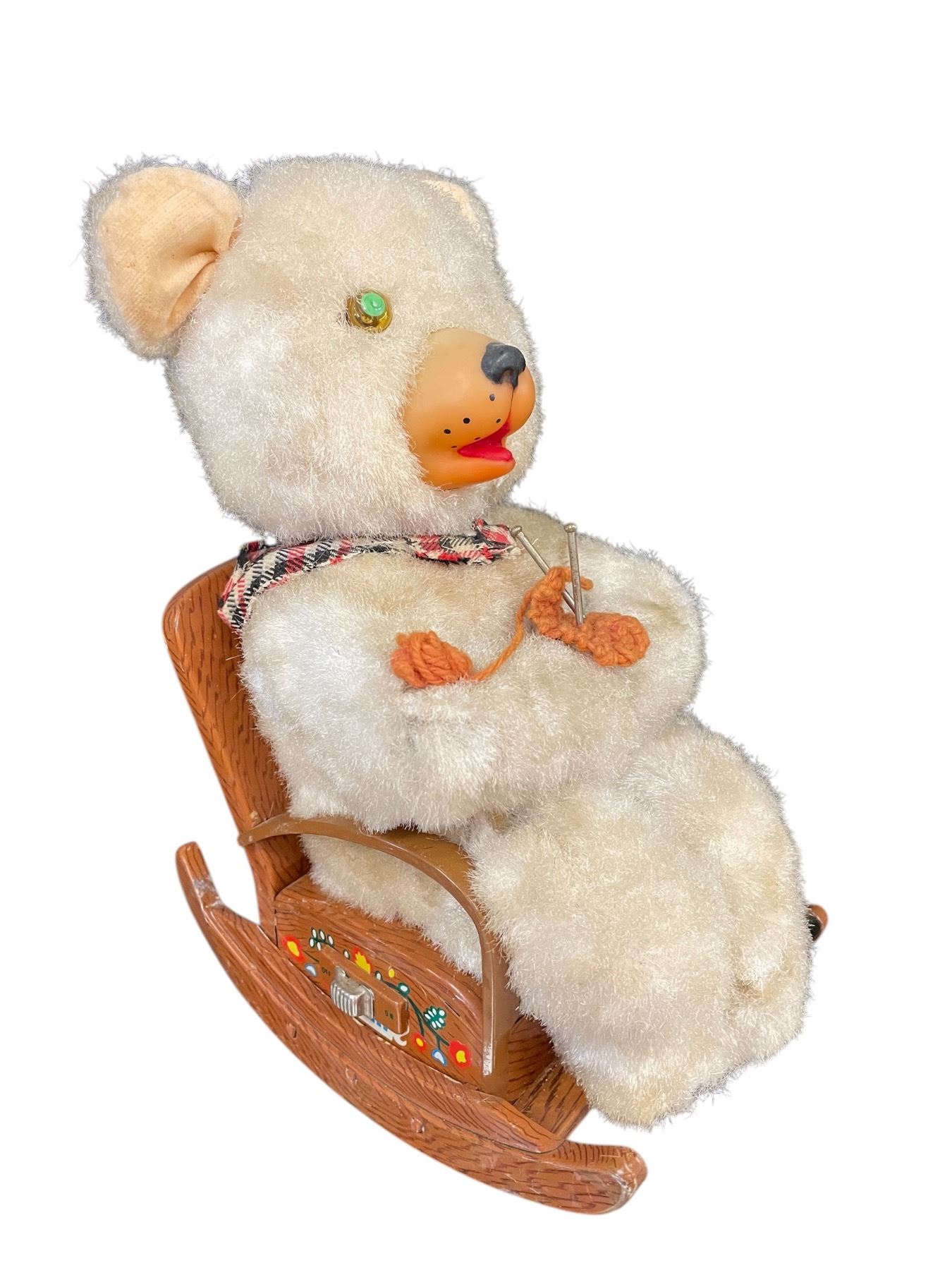 Vintage Battery Operated Tin Litho Knitting Rocking Chair Bear
