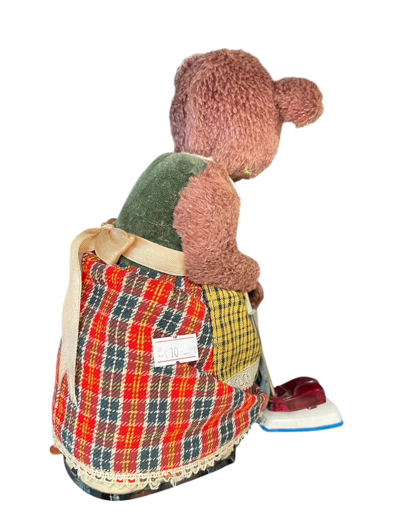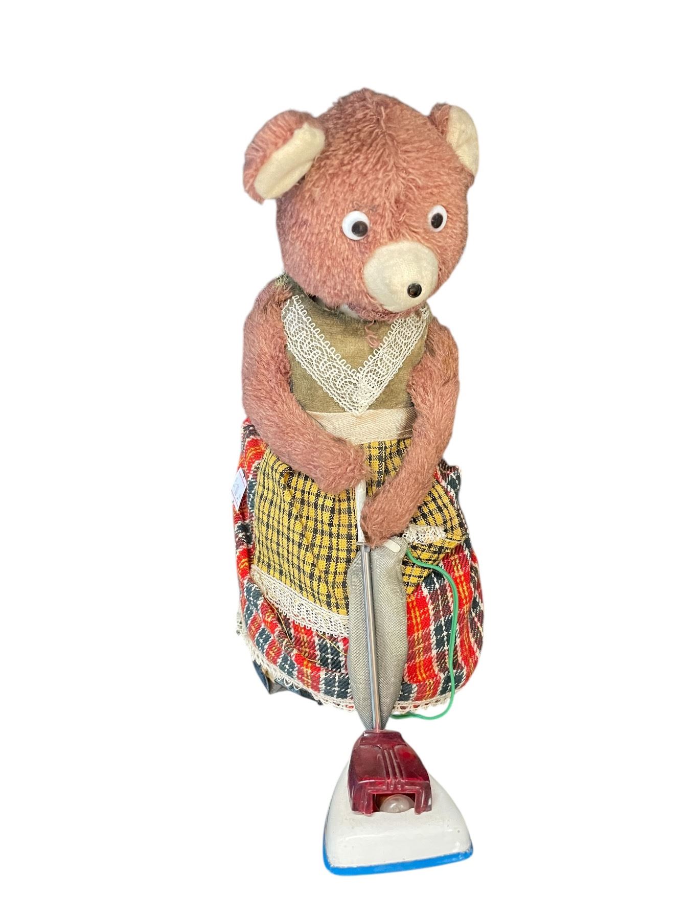 Vintage Battery Operated Tin Litho Mama Bear With Vacuum