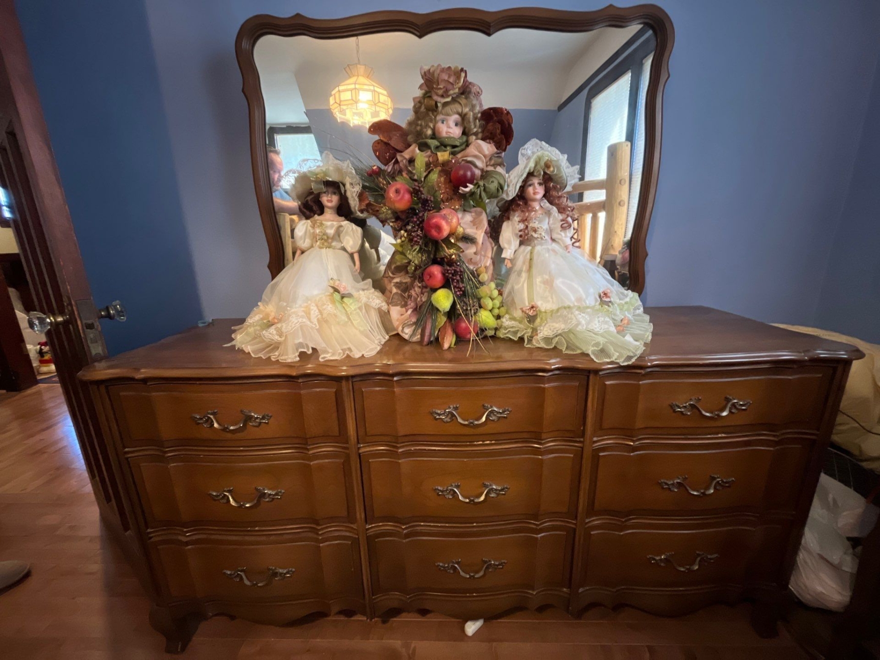Vintage Bedroom made by Malcom better built Furniture.set with 9 drawer dresser with mirror 64”long 19 “ wide