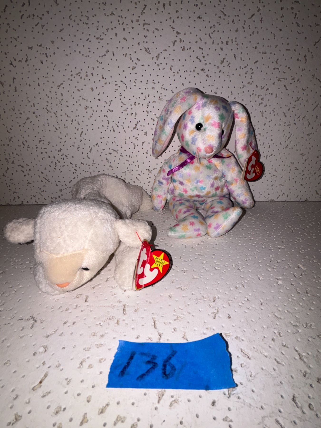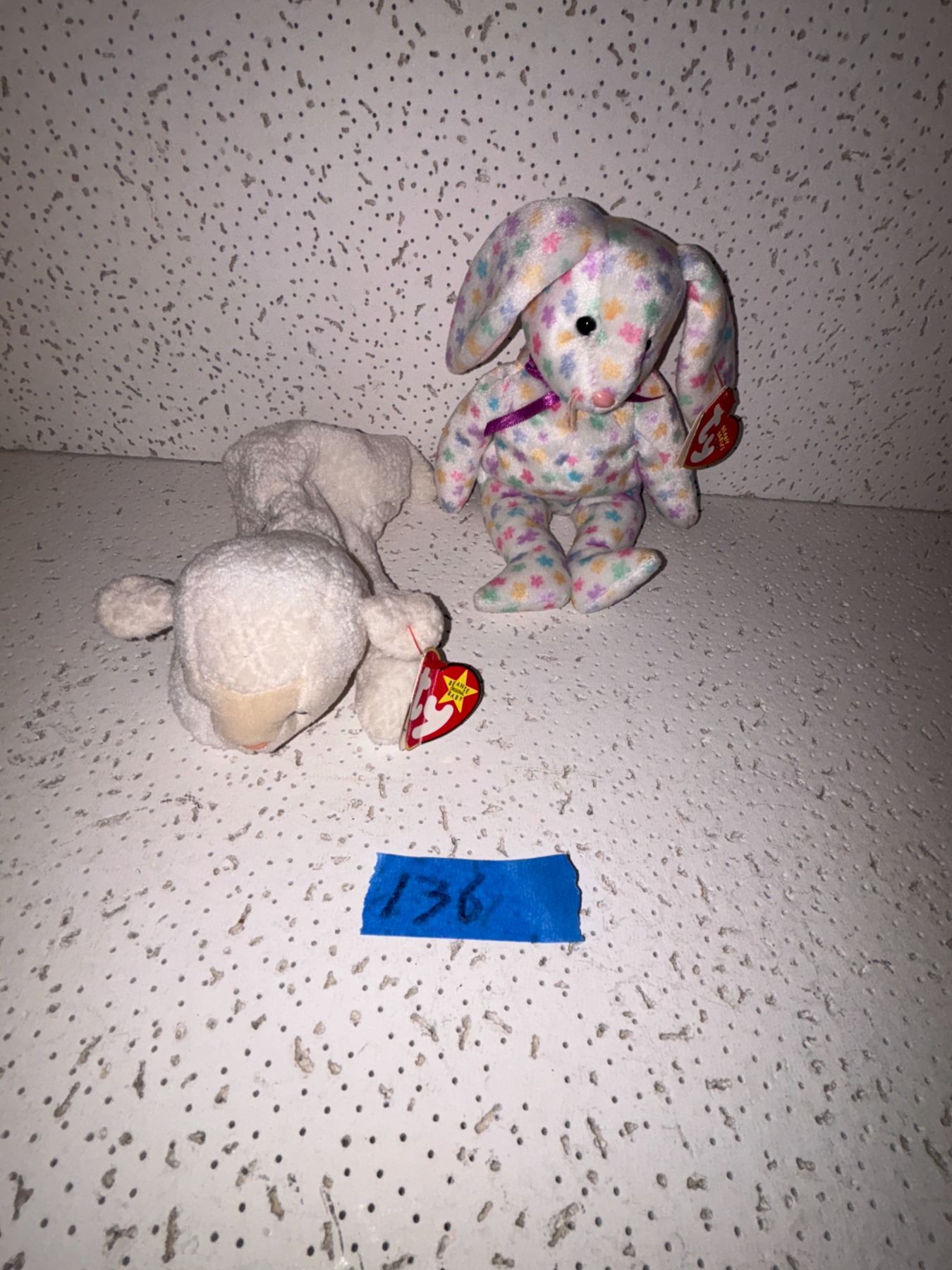 Vintage Beenie Babies Springfeild the bunny & Fleece the lamb