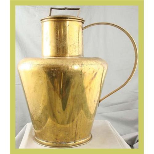 </STRONG>Title: 1950 Belgian Kitchenware Pitcher </STRONG><P>Item #: 6-46-0</P><P>Comment: Nice Decorator piece for any room!</P><P>Condition: Miscellaneous dings in all the right places add character to the piece.</P><P>Dimensions (in.): 19.5H 18.25W 15D </P><P>Age (ca.): 1950</P><P>Origin: Belgium</P><P>Style: Kitchenware</P><P>Material: Brass</P><P>Object: Pitcher</P><P>Piece Type: Vintage Kitchenware/Copper & Brass/Tools</P>Belgian Pitcher Kitchenware Brass