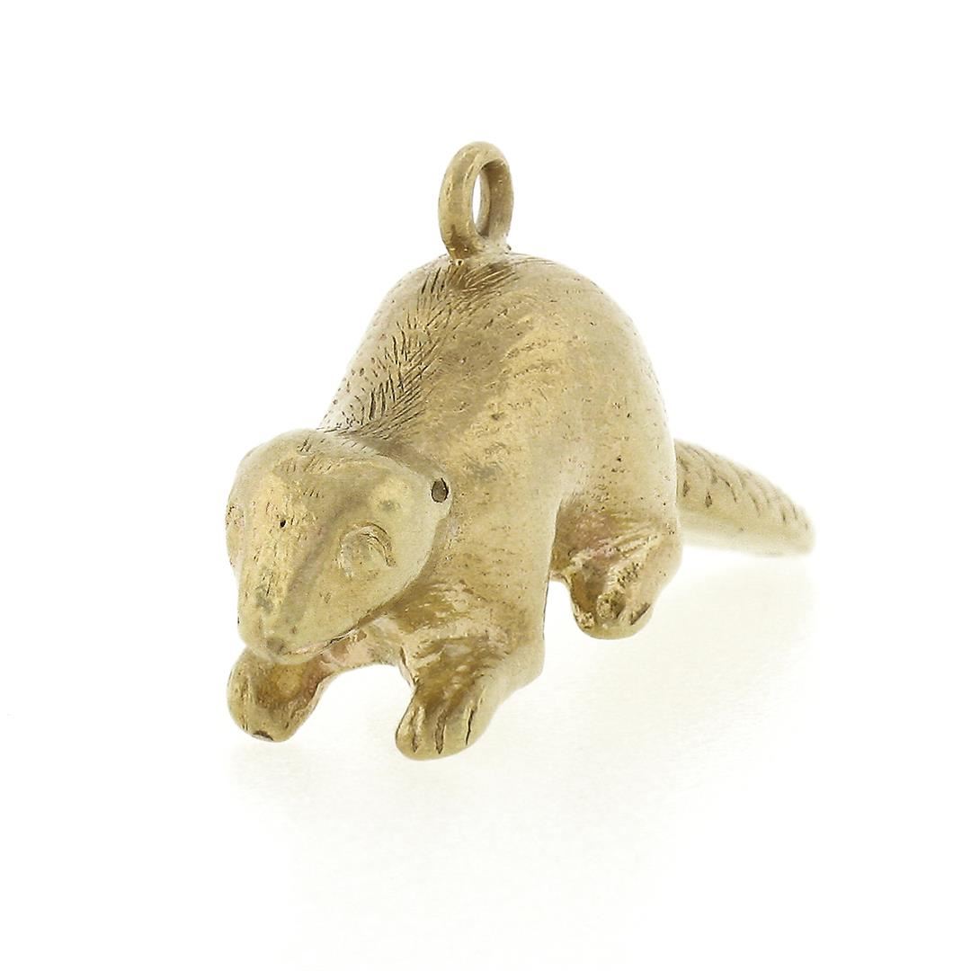 A vintage solid 10k yellow gold 3D beaver charm pendant by Birks. The pendant weighs a total of 5.64 grams, measures 14.45x32.7mm including the bail, and requires jump ring for wear.
