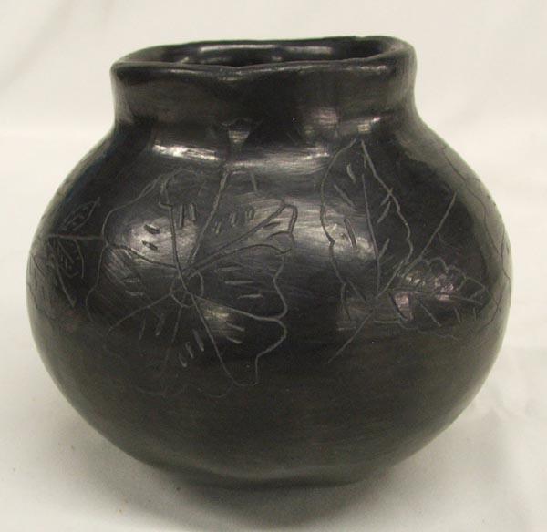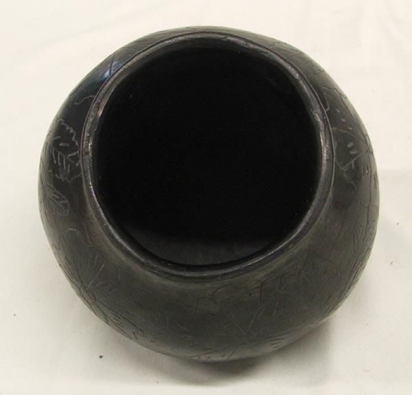 Vintage Black Mata Ortiz Flower Design Pottery Signed ''JGL''. Measures approx. 5'' x 5''. SHI $25.