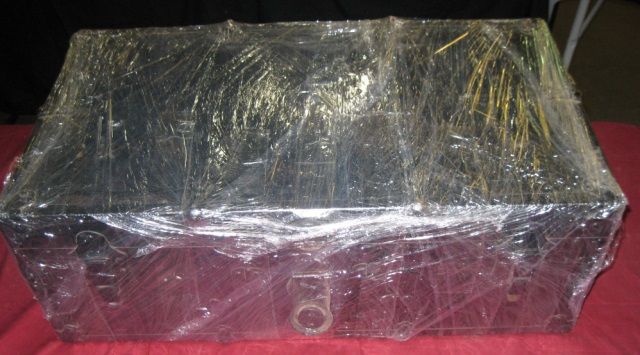This Trunk Has Been Pulled Out Of Storage This Way. We Did Add More Wrap To Thicken The Original Wrapping. We Have No Knowledge of Contents. Treasure?