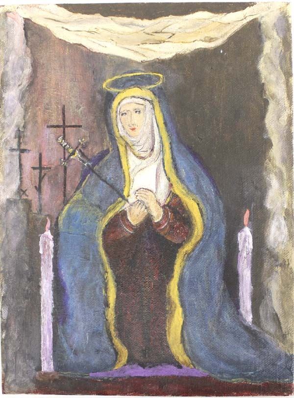 Vintage Original Blessed Virgin Mary Painting on Board, measures 9'' x 12''