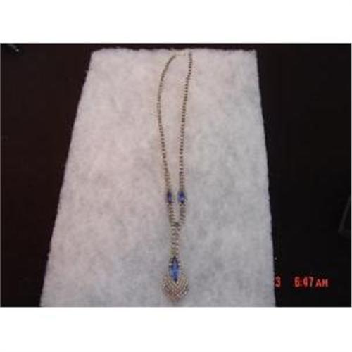 <tr><td>Title:Vintage Blue Clear Rhinestone Necklace Designer</td></tr>